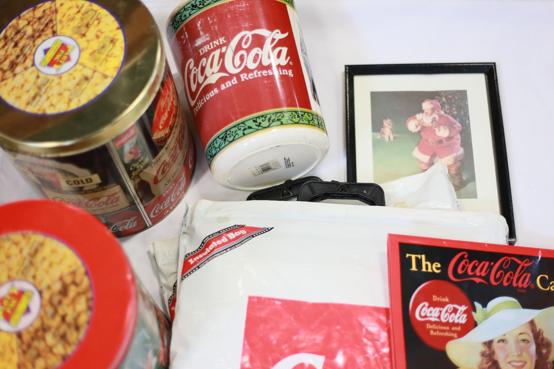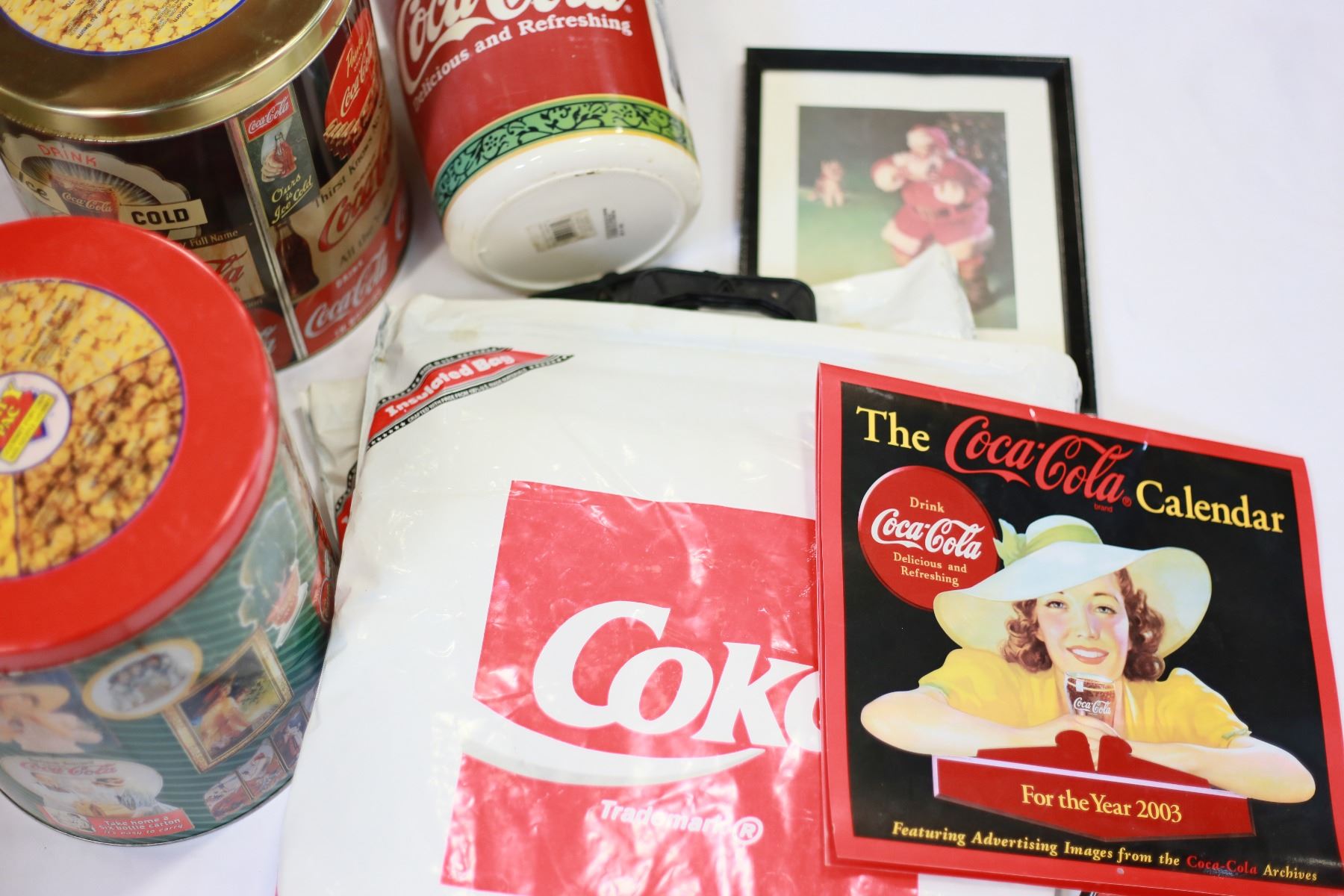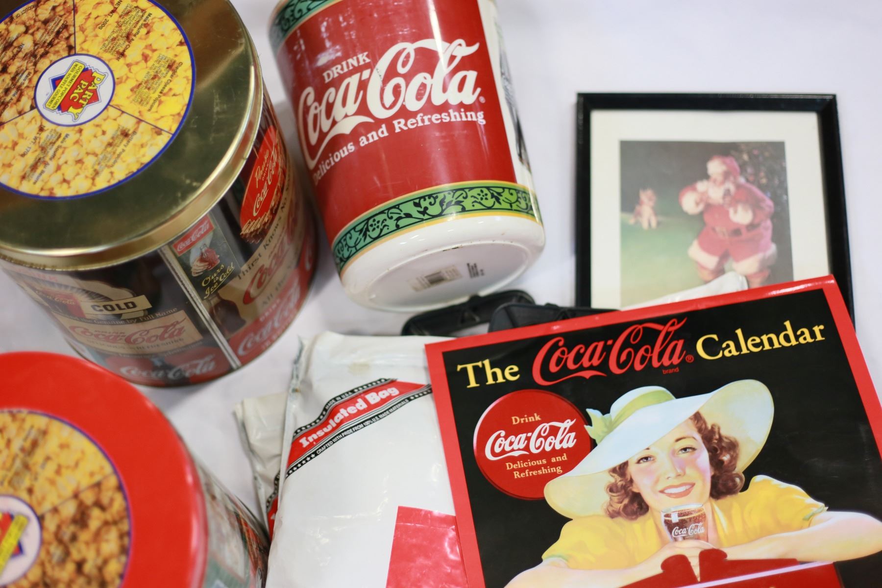 TWO INSULATED BAGS 2003 CALENDAR GARBAGE PAIL AND TWO LARGE POPCORN TINS