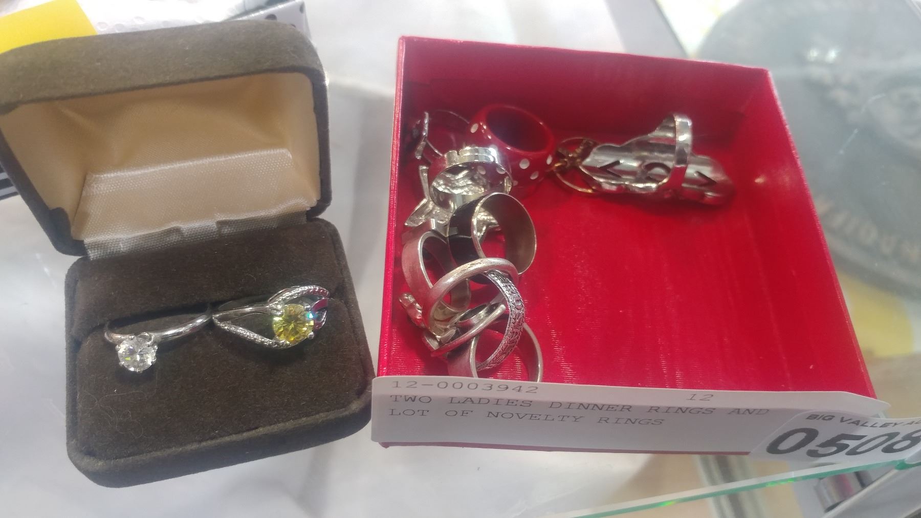 TWO LADIES DINNER RINGS AND LOT OF NOVELTY RINGS