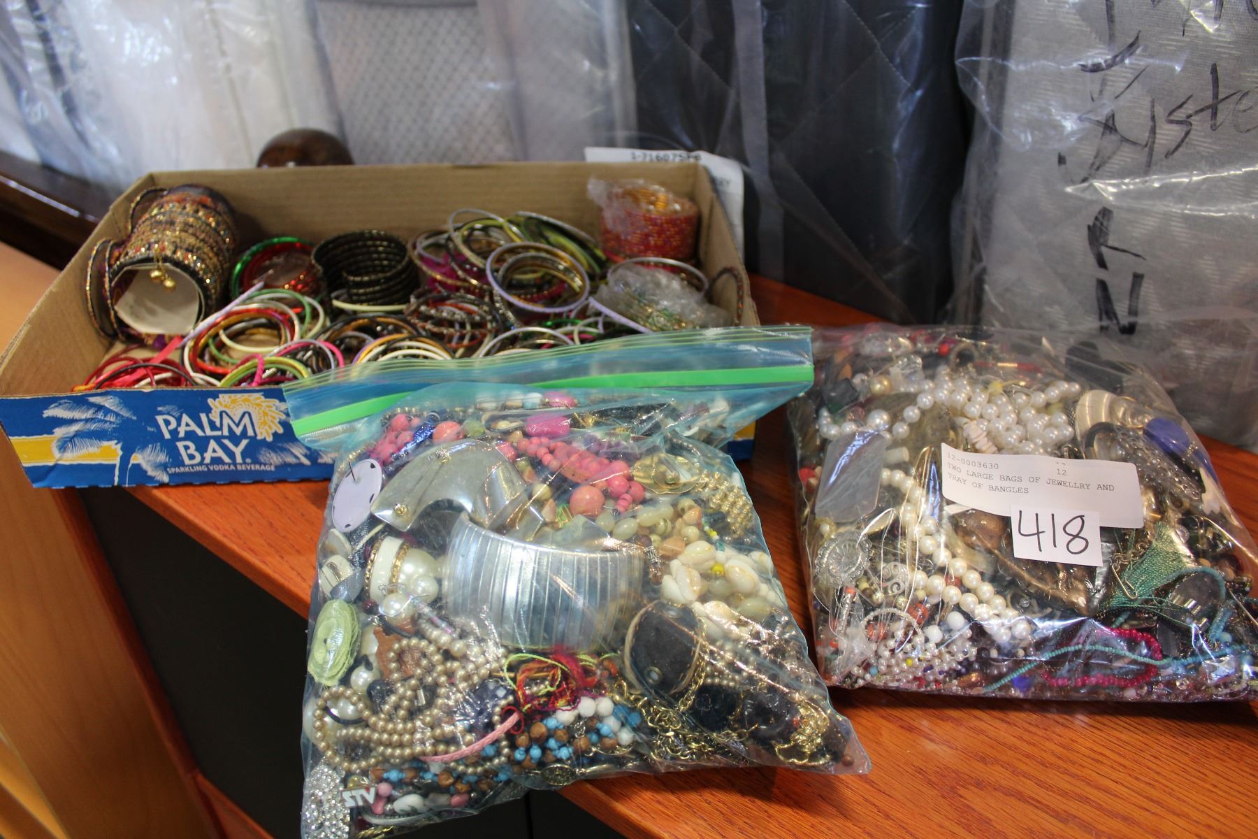 TWO LARGE BAGS OF JEWELLRY AND TRAY OF BANGLES