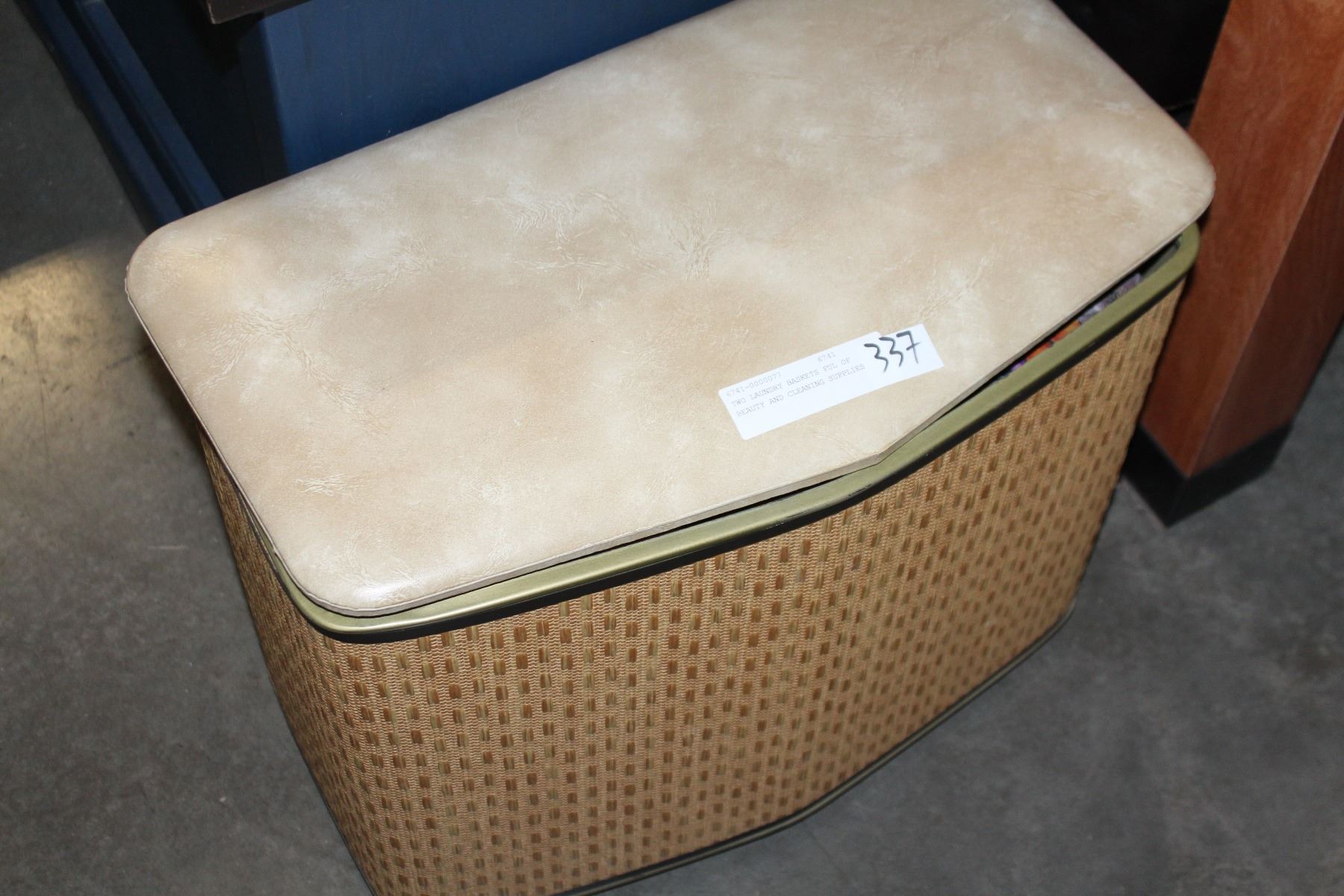 TWO LAUNDRY BASKETS FUL OF BEAUTY AND CLEANING SUPPLIES