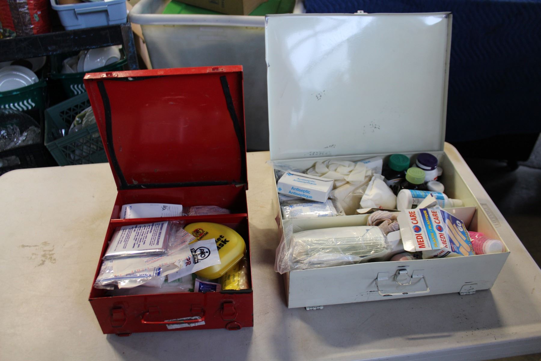 TWO METAL FIRST AID KITS