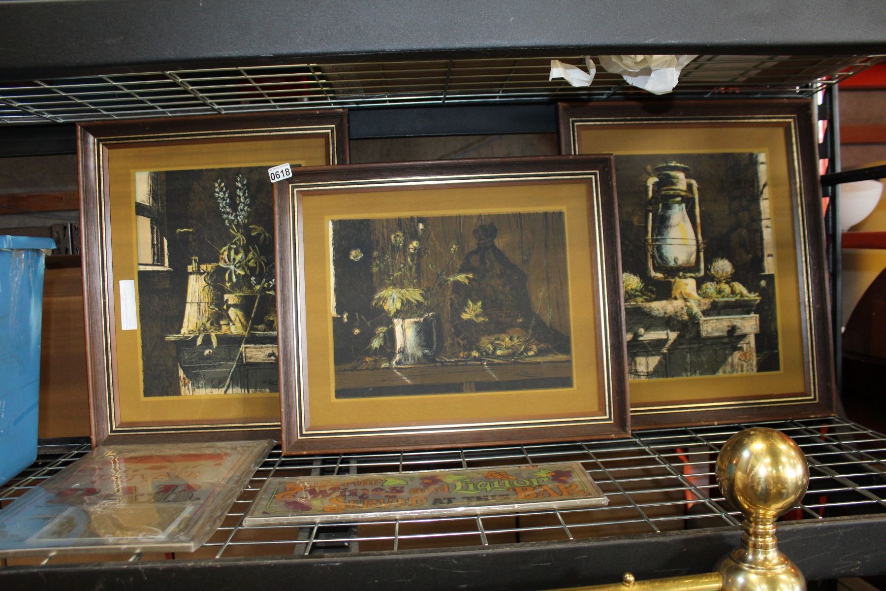 TWO MIRRORED PRINTS AND SET OF 3 PRINTS