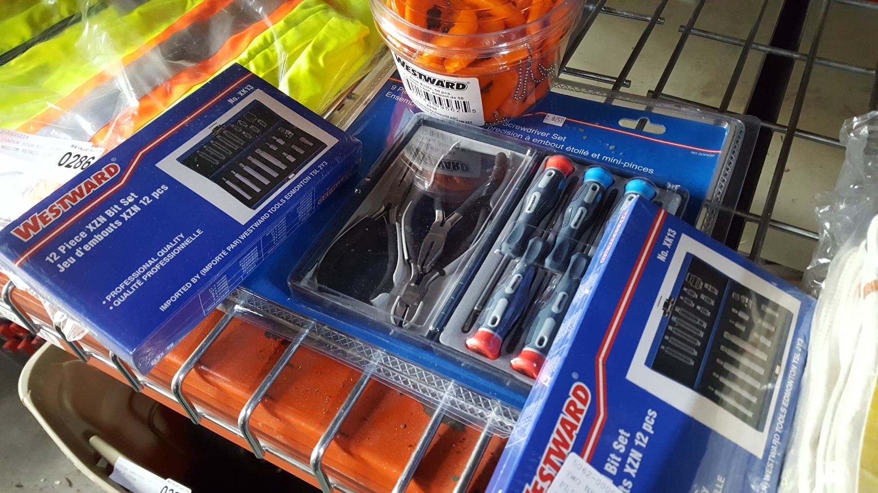 TWO NEW 12PC XZN BIT SETS, PLIER AND SCREWDRIVER SET W/TUB OF BOWL KNIVES