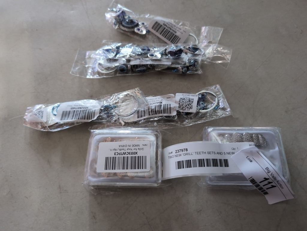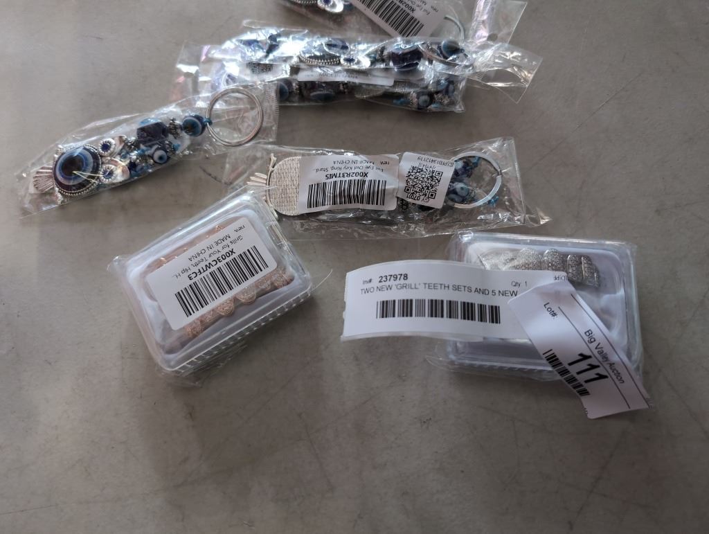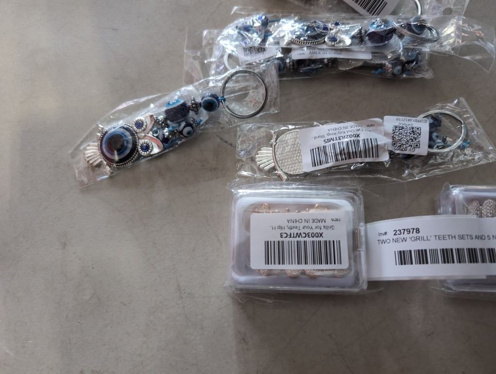 TWO NEW 'GRILL' TEETH SETS AND 5 NEW EVEIL EYE OWL KEYCHAINS