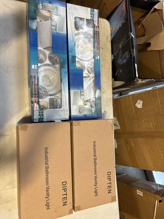 TWO NEW INDUSTRIAL BATHROOM LIGHT FIXTURES AND ACCESSORY KITS