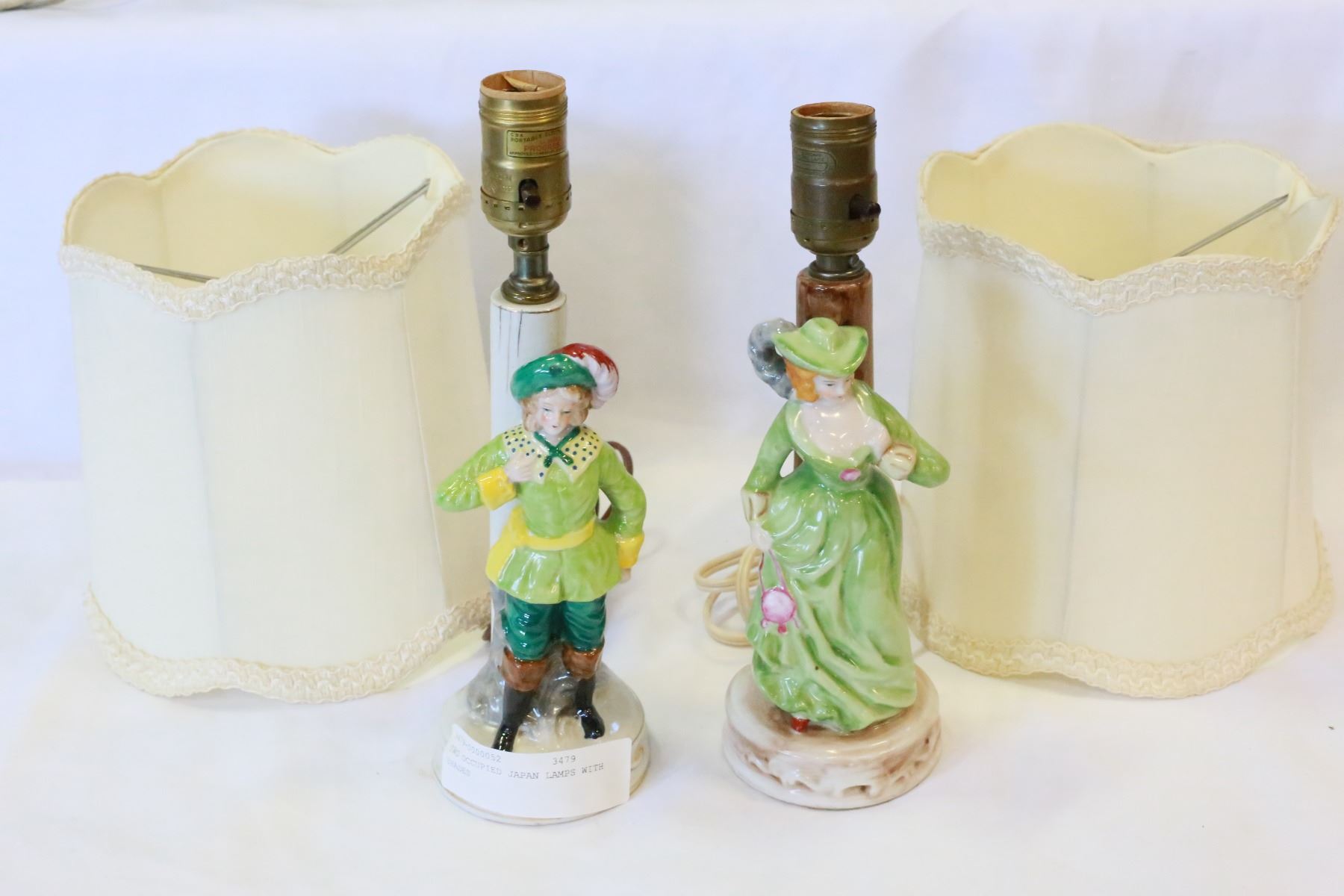 TWO OCCUPIED JAPAN LAMPS WITH SHADES