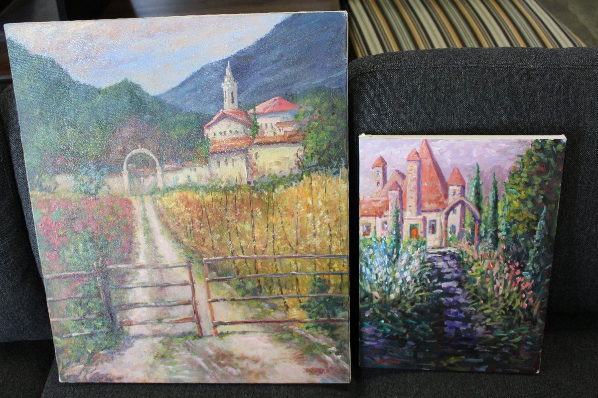 TWO ORIGINAL PAINTINGS ON CANVAS BY OTTO JEGODTKA "TUSCANY" AND "TWILIGHT AT THE CHATEAU"