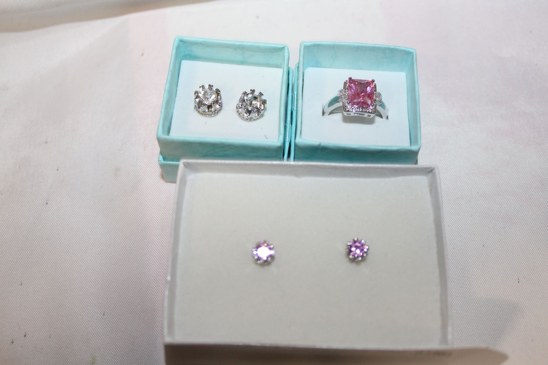 TWO PAIR OF EARRINGS AND RING