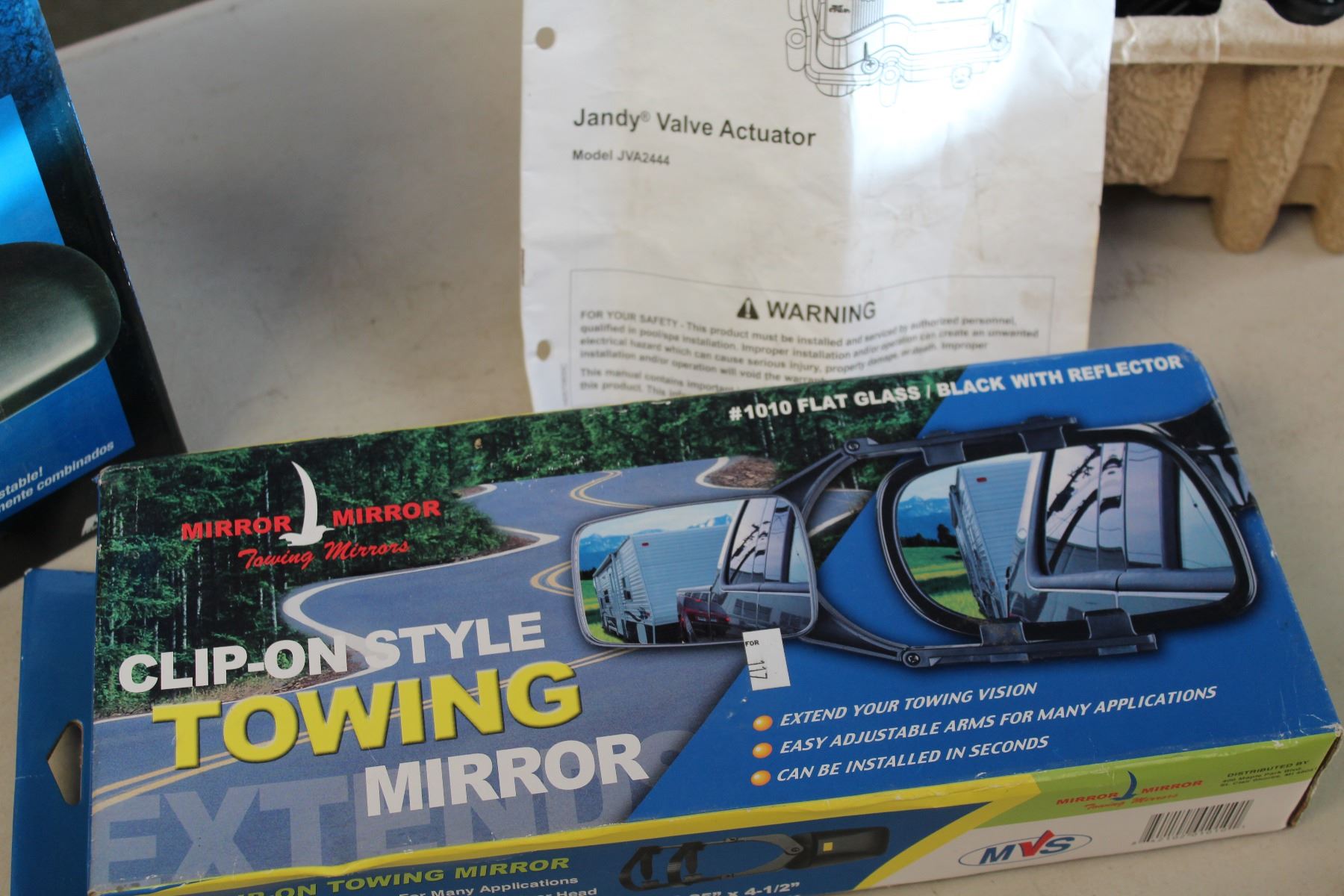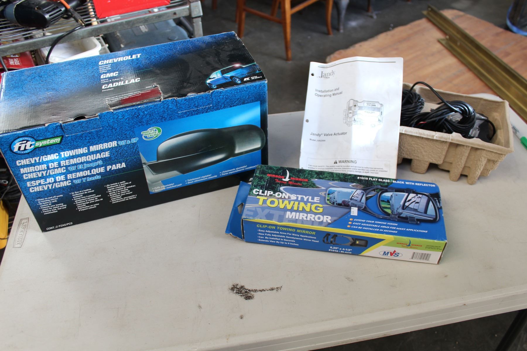 TWO PAIR OF TOWING MIRRORS AND VALVE ACULATOR