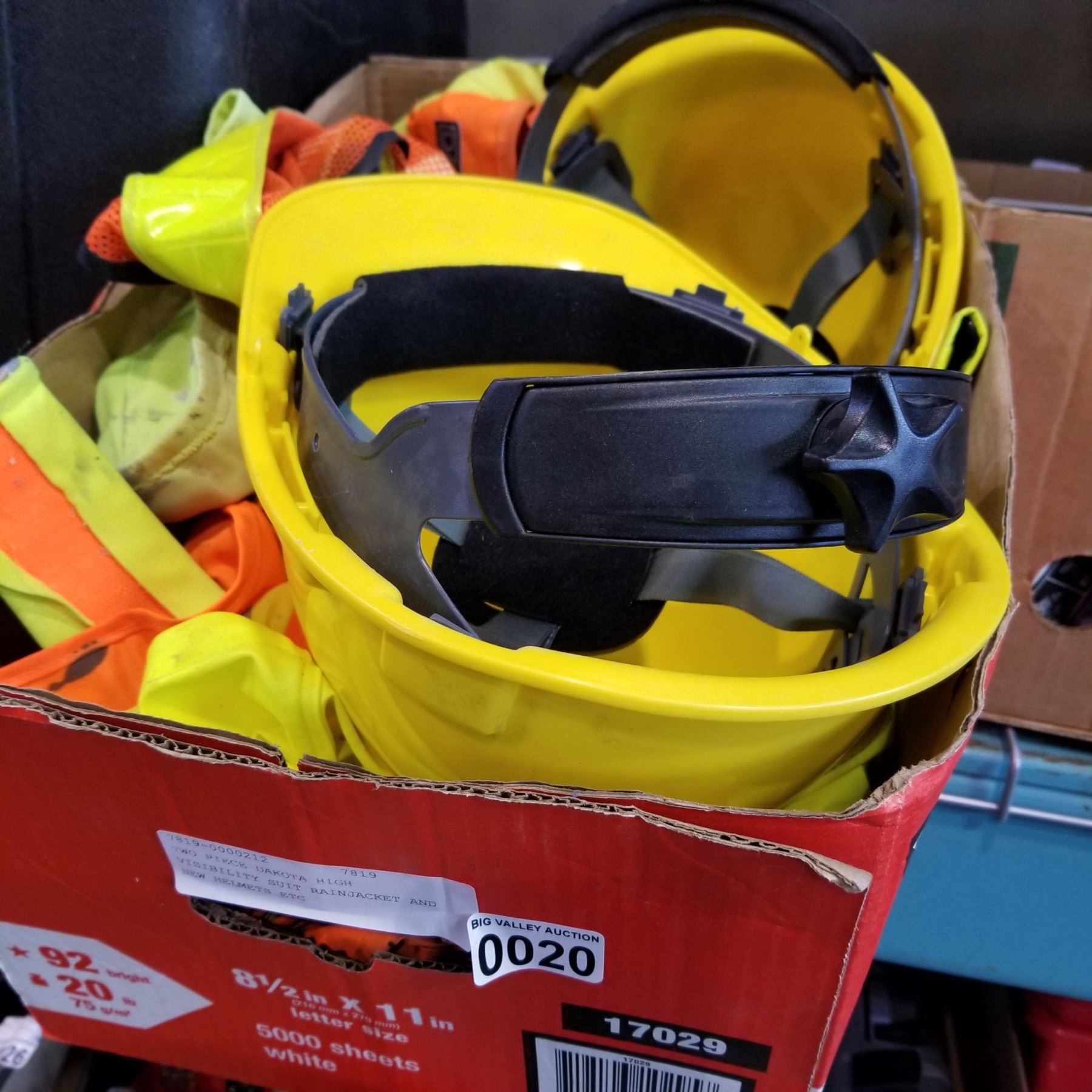 TWO PIECE DAKOTA HIGH VISIBILITY SUIT RAINJACKET AND NEW HELMETS ETC