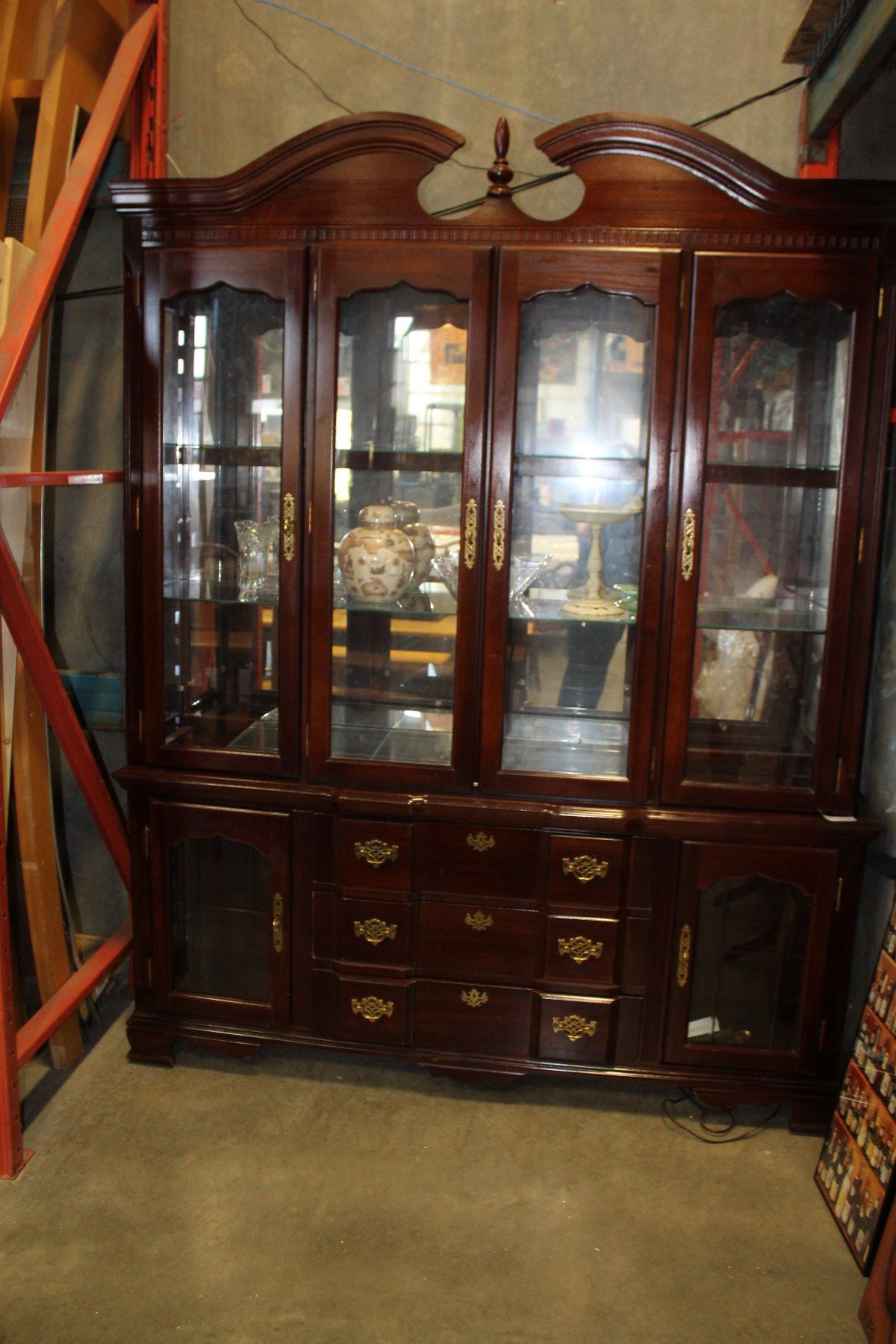 TWO PIECE MAHOGANY FINISH CHINA CABINET