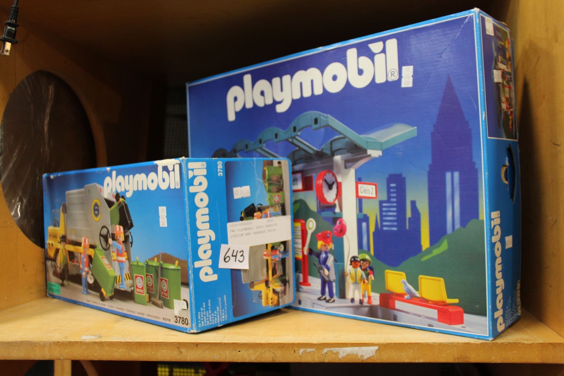 TWO PLAYMOBIL SETS SERVICE STATION AND GARBAGE TRUCK