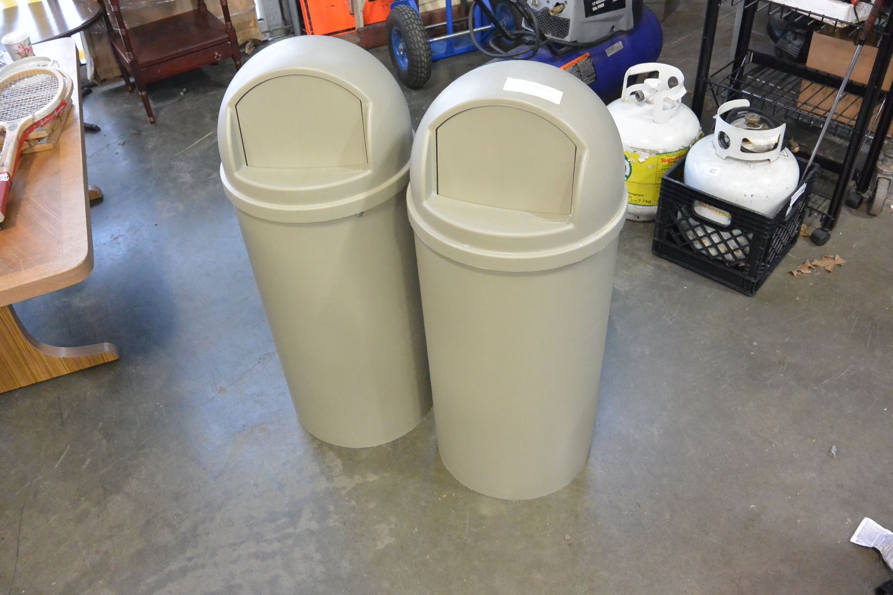 TWO RUBBERMAID GARBAGE CANS