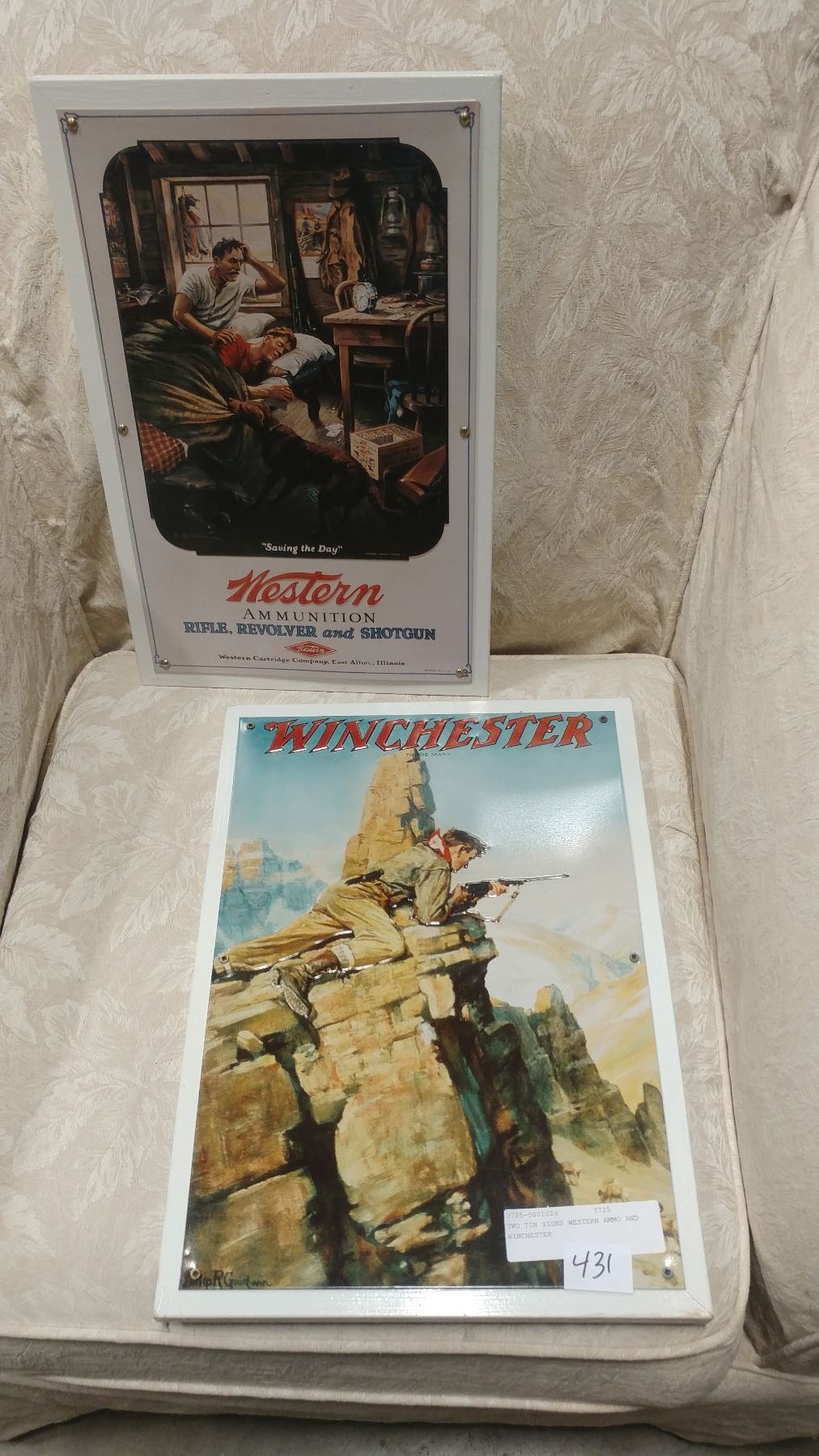 TWO TIN SIGNS WESTERN AMMO AND WINCHESTER