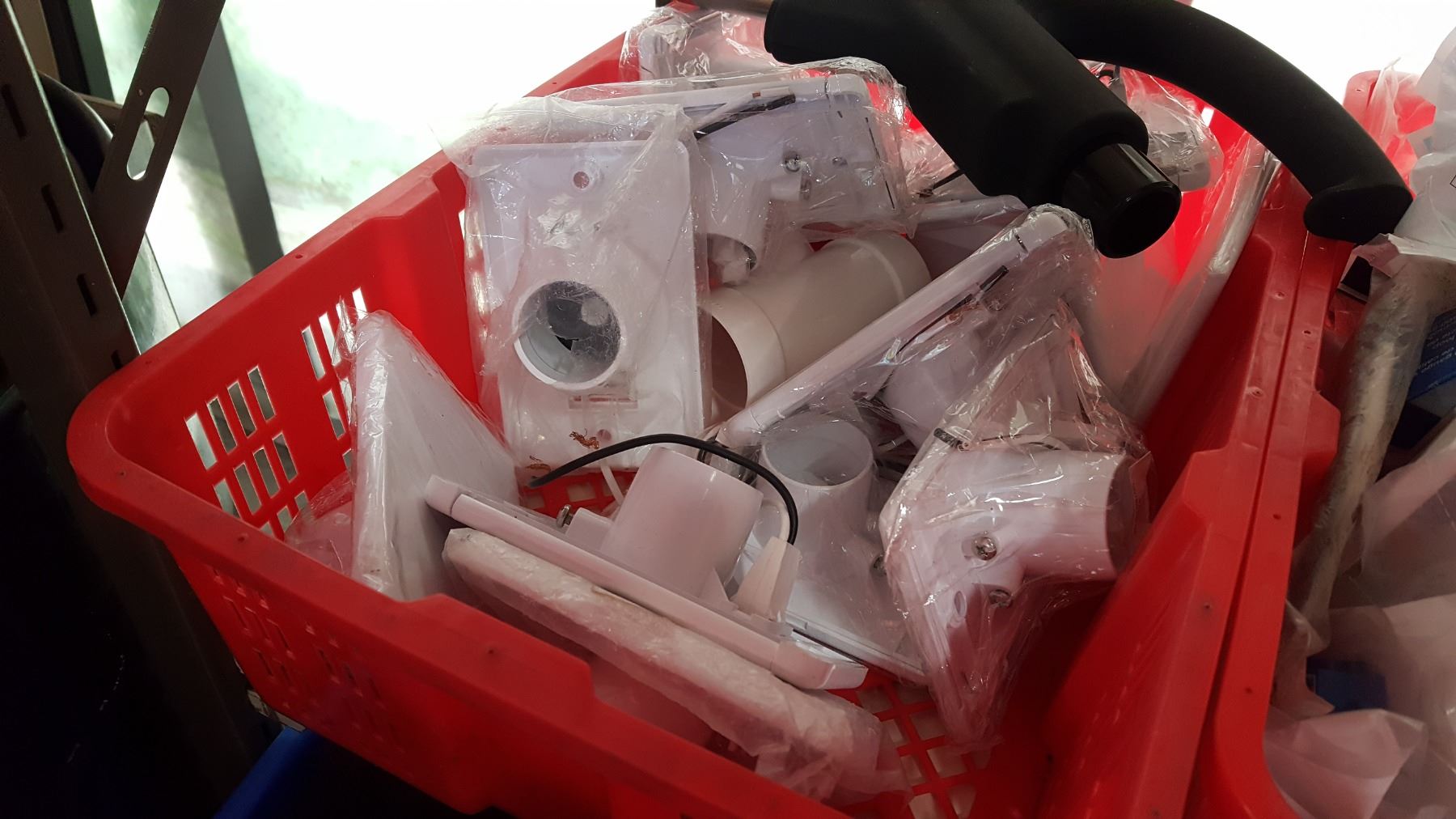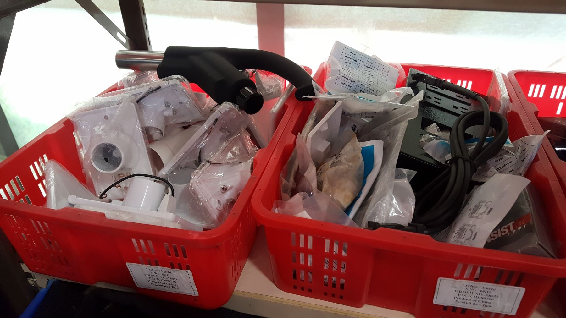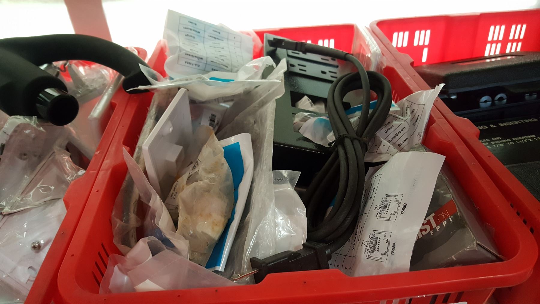 TWO TOTES OF NEW ELECTRICAL HOUSEHOLD ITEMS