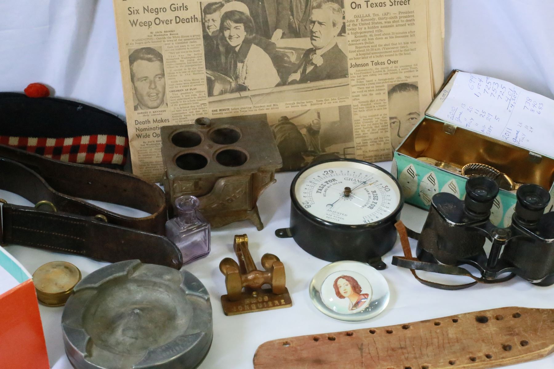 TWO TRAYS OF COLLECTIBLE ITEMS AND JFK NEWSPAPER