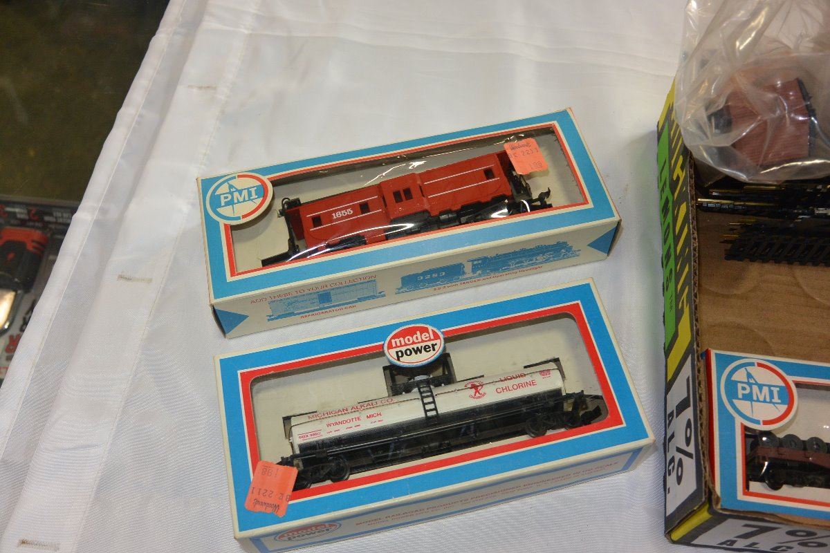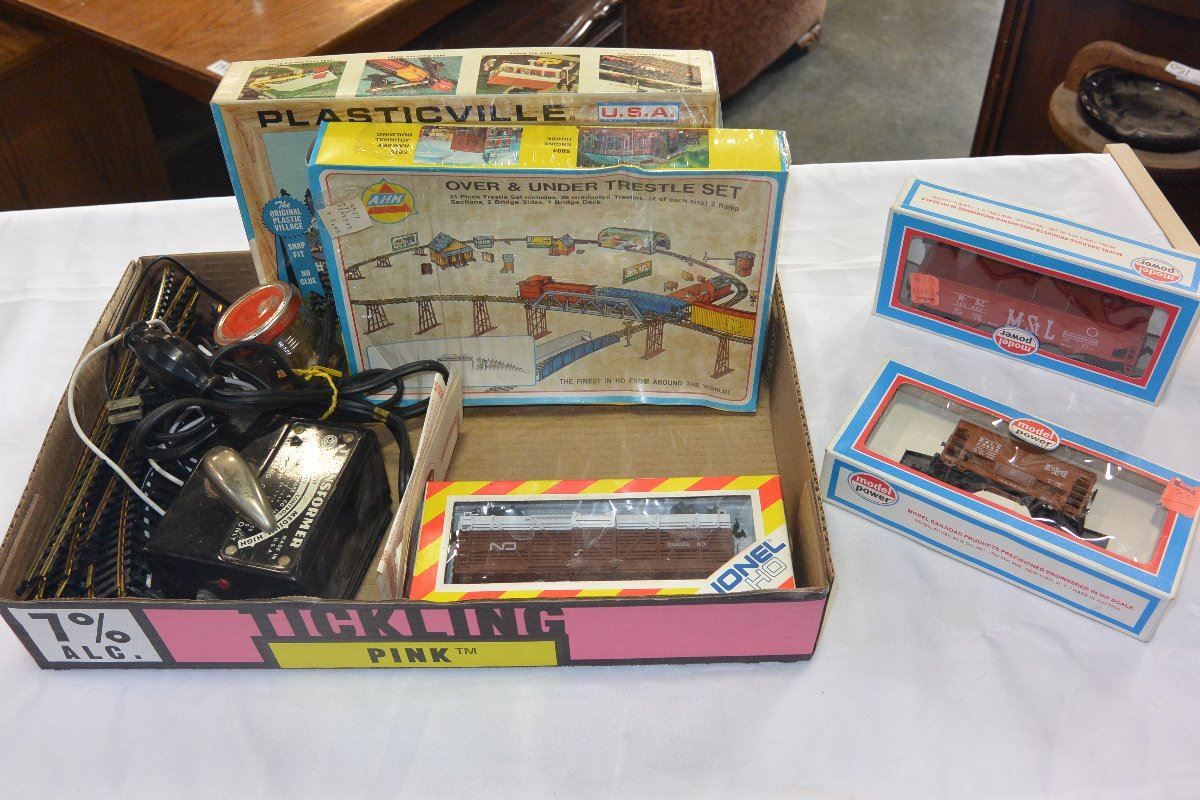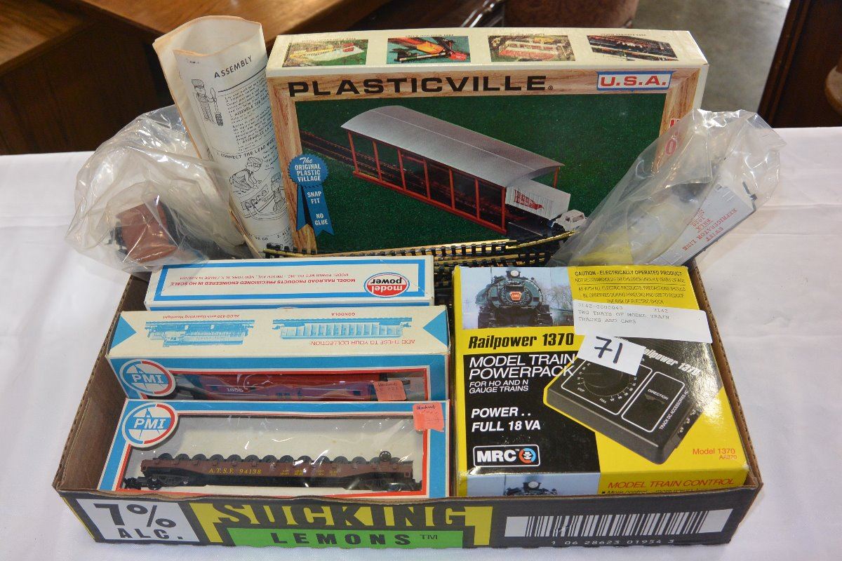 TWO TRAYS OF MODEL TRAIN TRACKS AND CARS