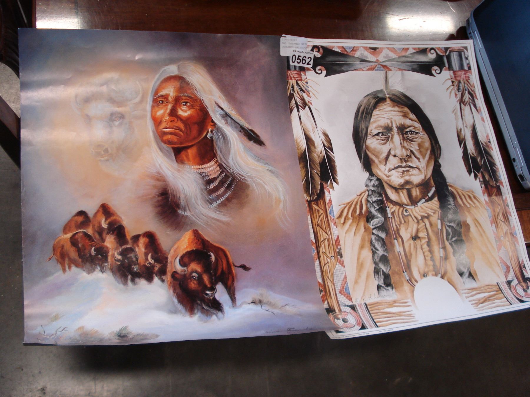 TWO UNFRAMED NATIVE PRINTS AND UNFRAMED SALVADOR DALI PRINT