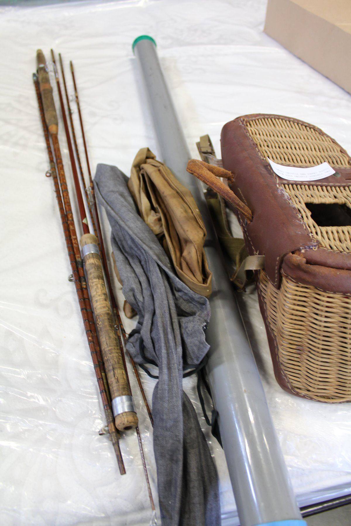 TWO VINTAGE FISHING RODS WITH CLOTH CASES AND FISHING CREWEL