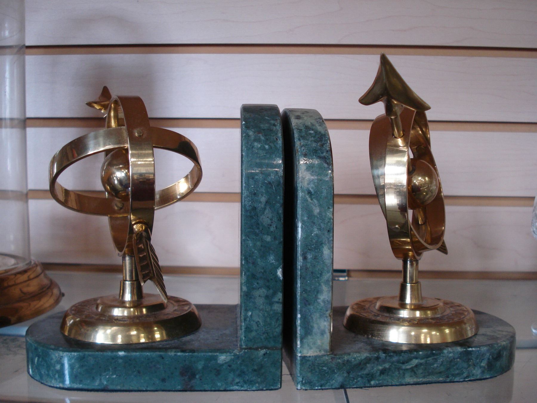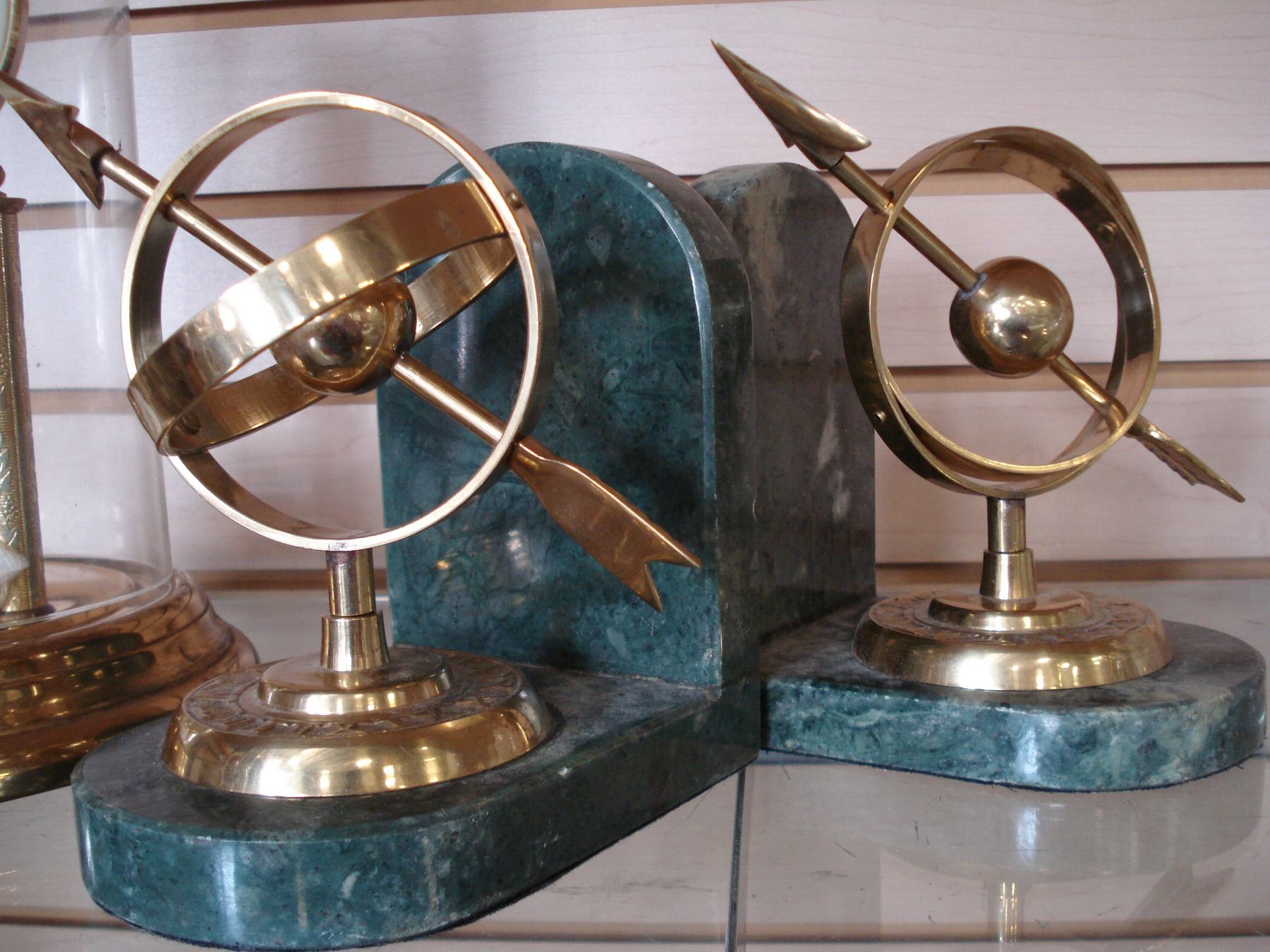 TWO VINTAGE MARBLE BOOKENDS AND DOME CLOCK