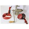 TWO VINTAGE SLICERS AND MEAT GRINDER