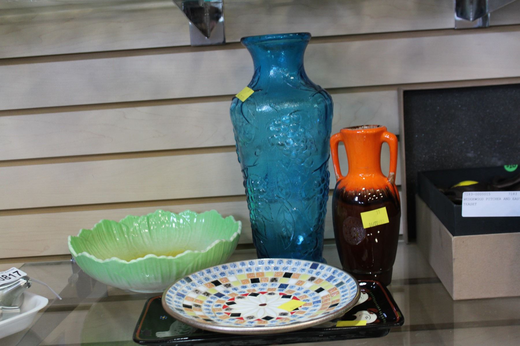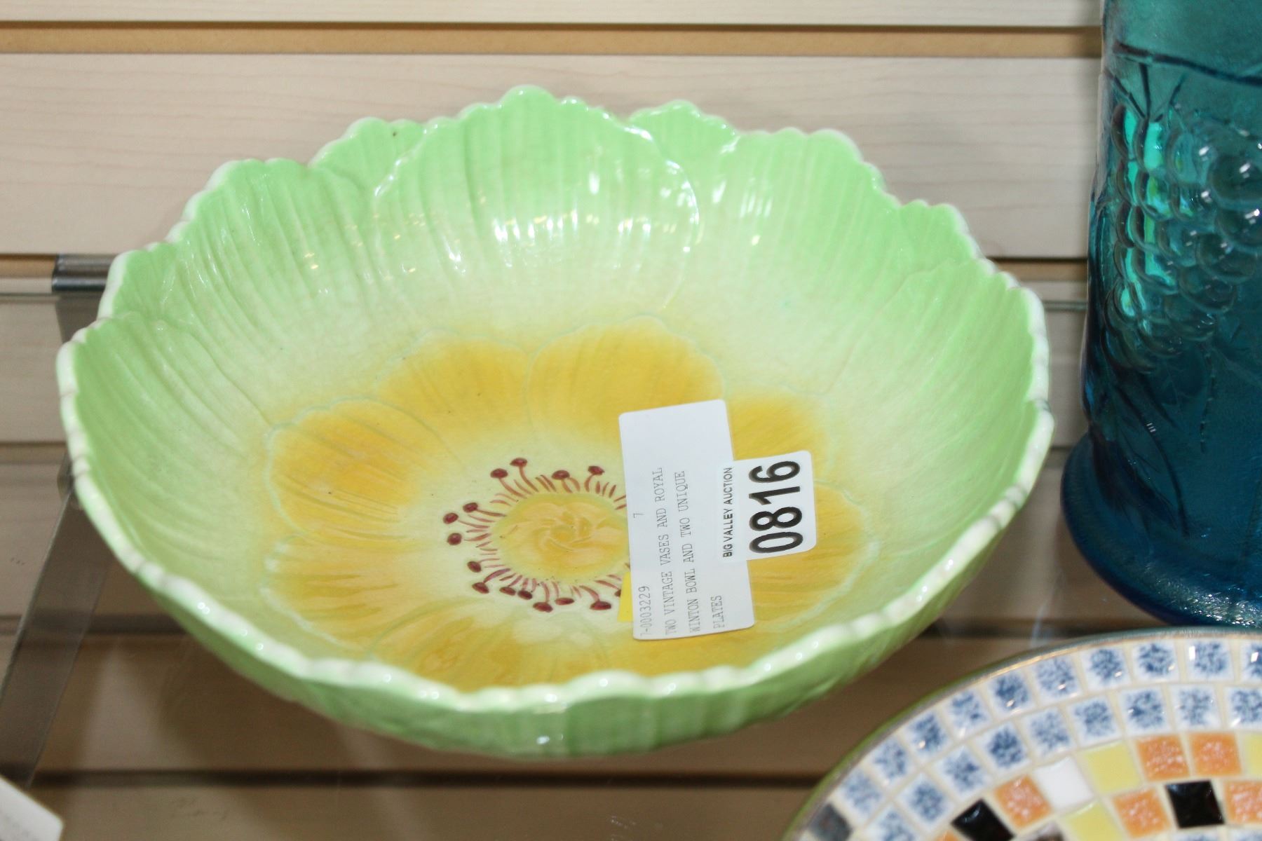 TWO VINTAGE VASES AND ROYAL WINTON BOWL AND TWO UNIQUE PLATES