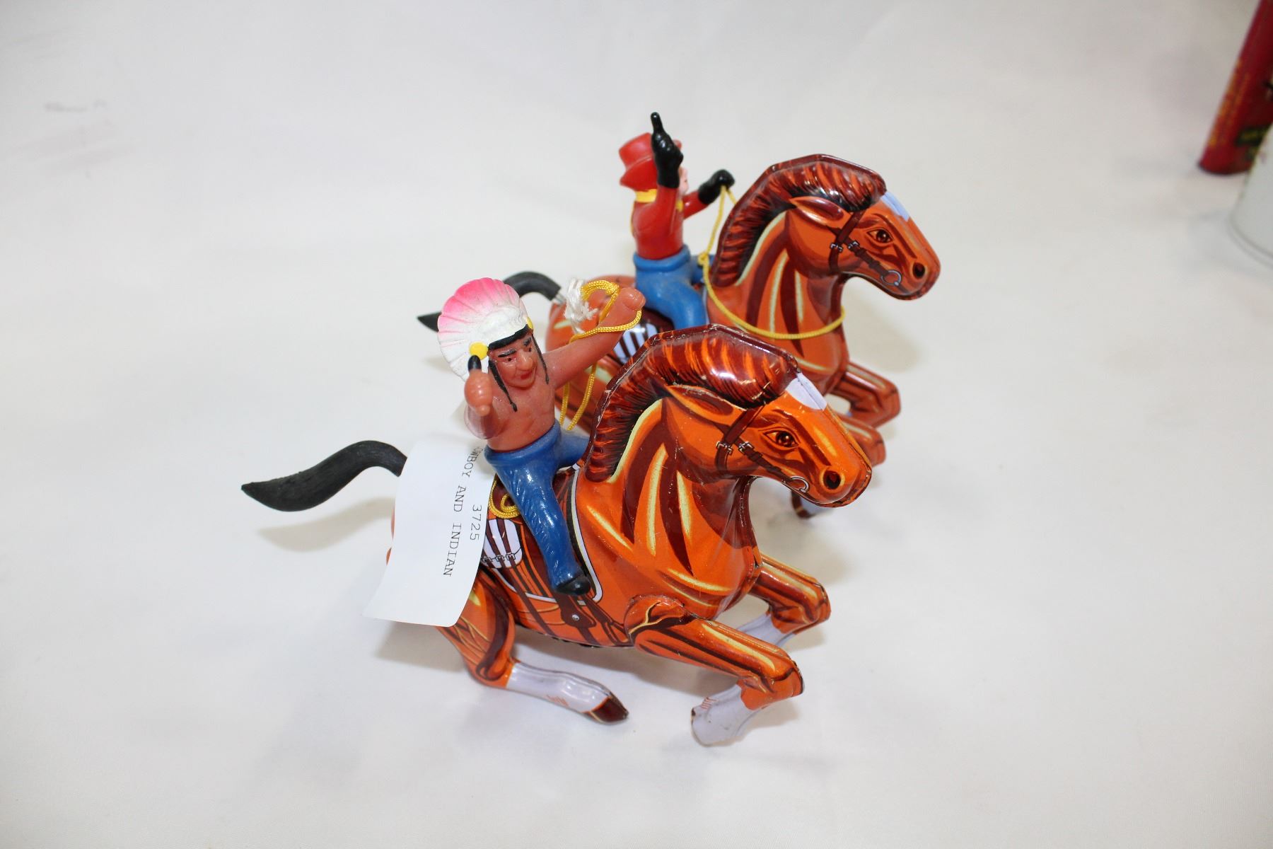 TWO WINDUP COWBOY AND INDIAN HORSES