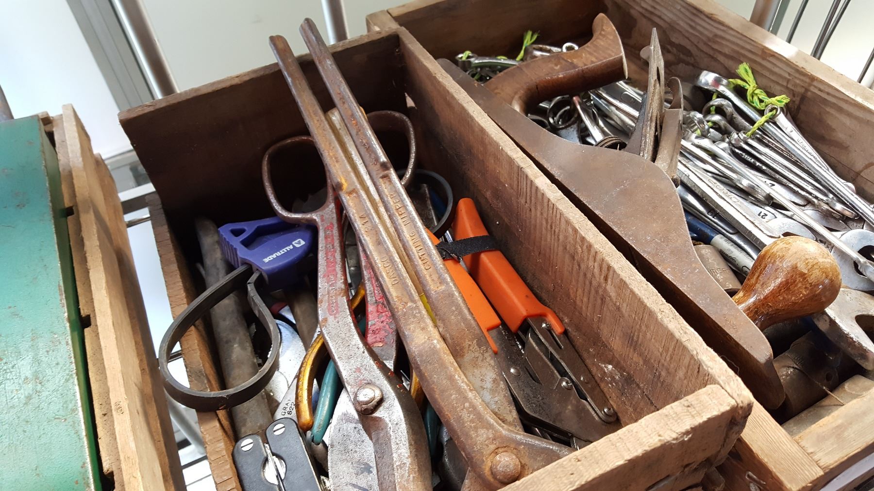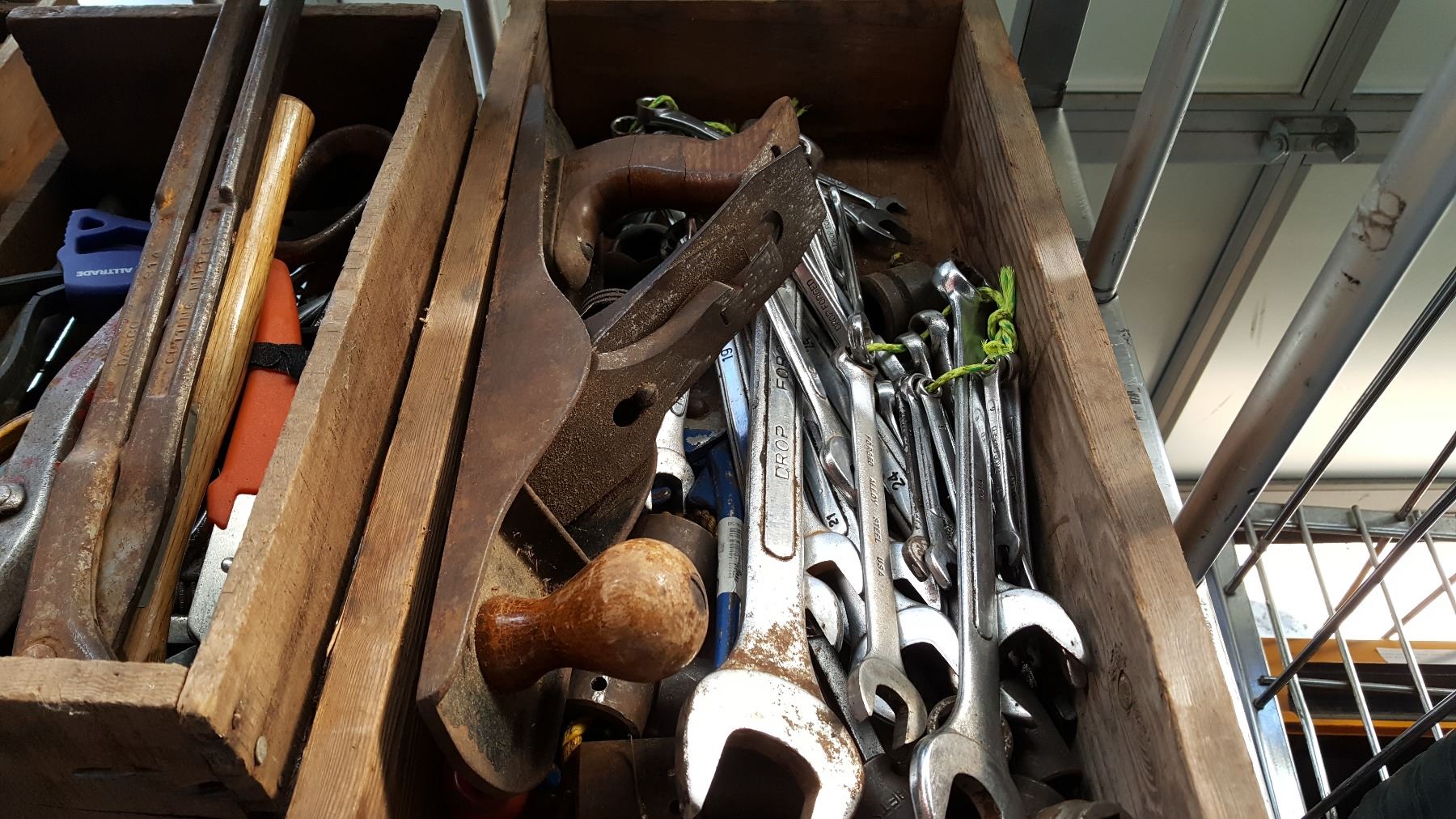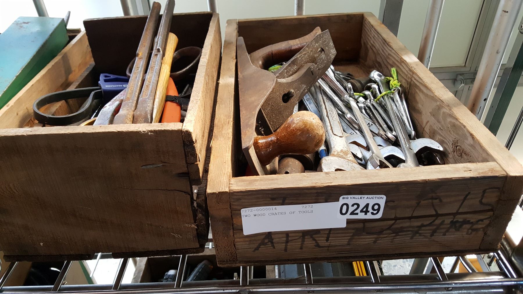 TWO WOOD CRATES OF TOOLS