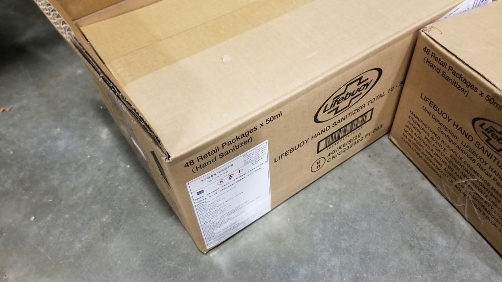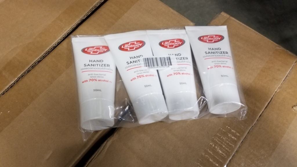 Two boxes of new lifebouy travel size hand sanitizer retail $189