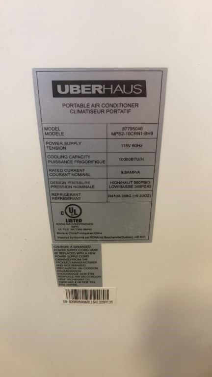 UBERHAUS 10000 BTU PORTABLE AIR CONDITIONER