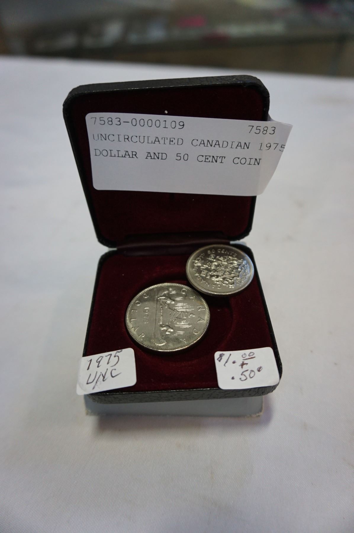 UNCIRCULATED CANADIAN 1975 DOLLAR AND 50 CENT COIN