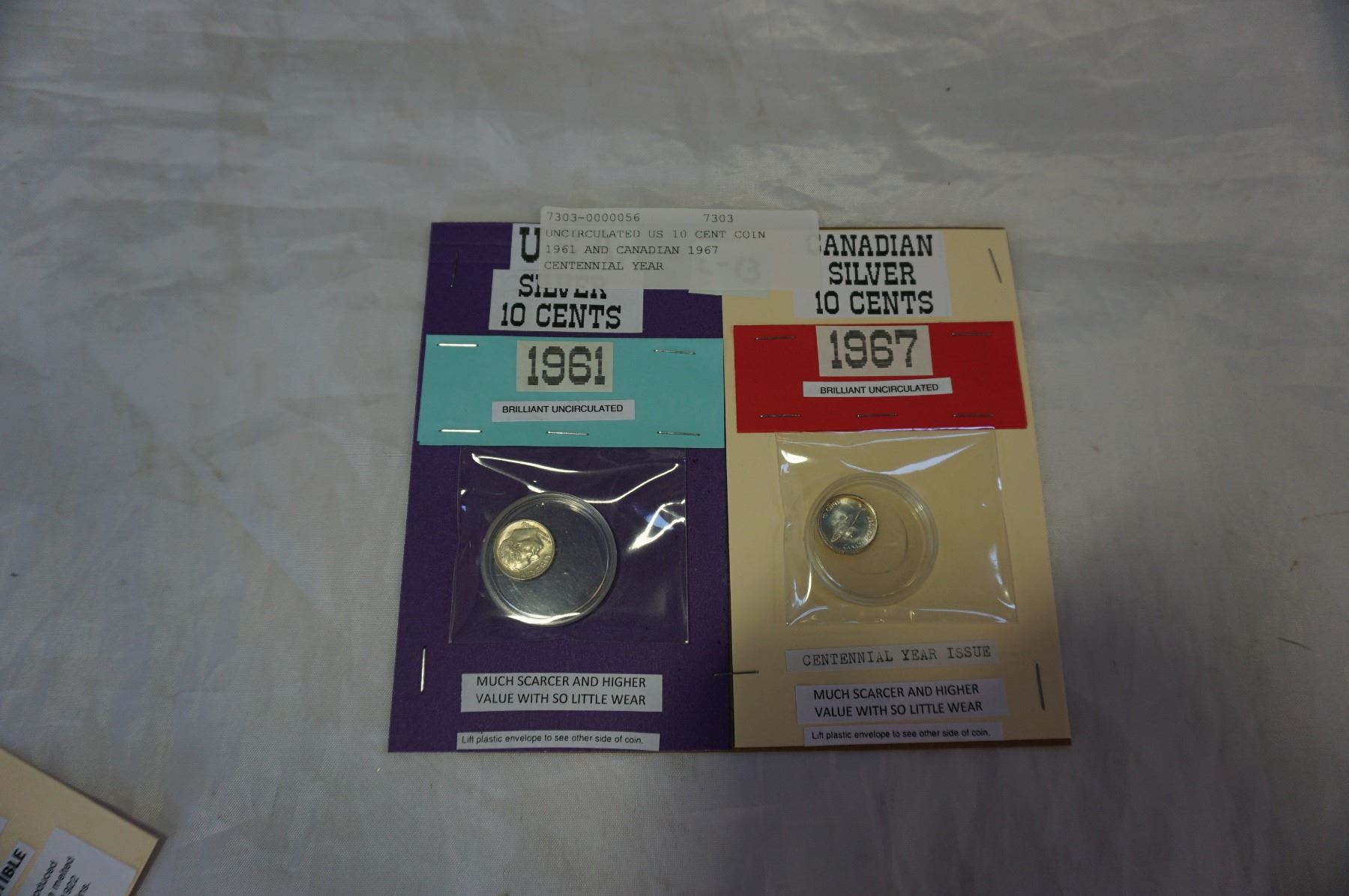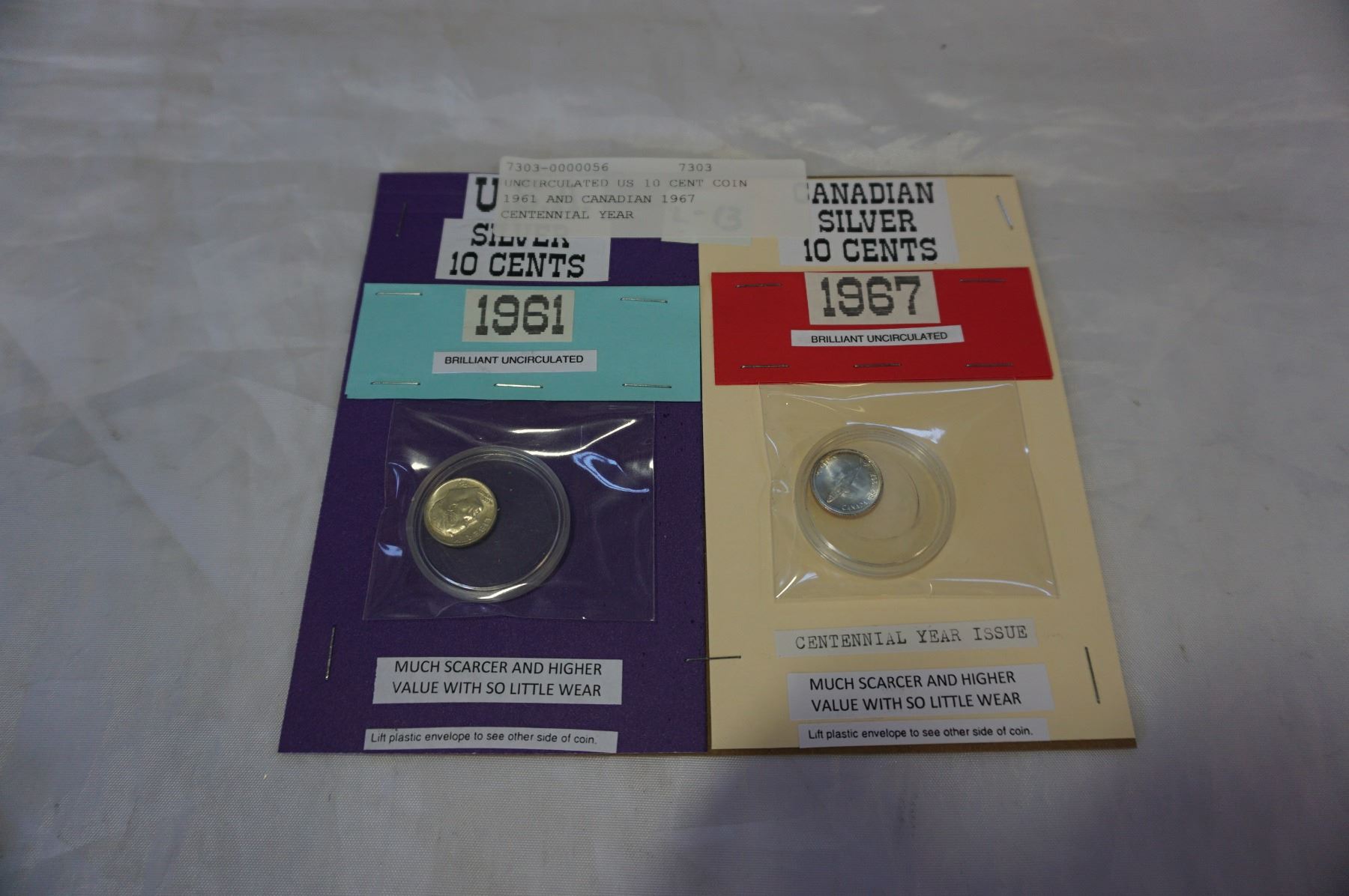 UNCIRCULATED US 10 CENT COIN 1961 AND CANADIAN 1967 CENTENNIAL YEAR