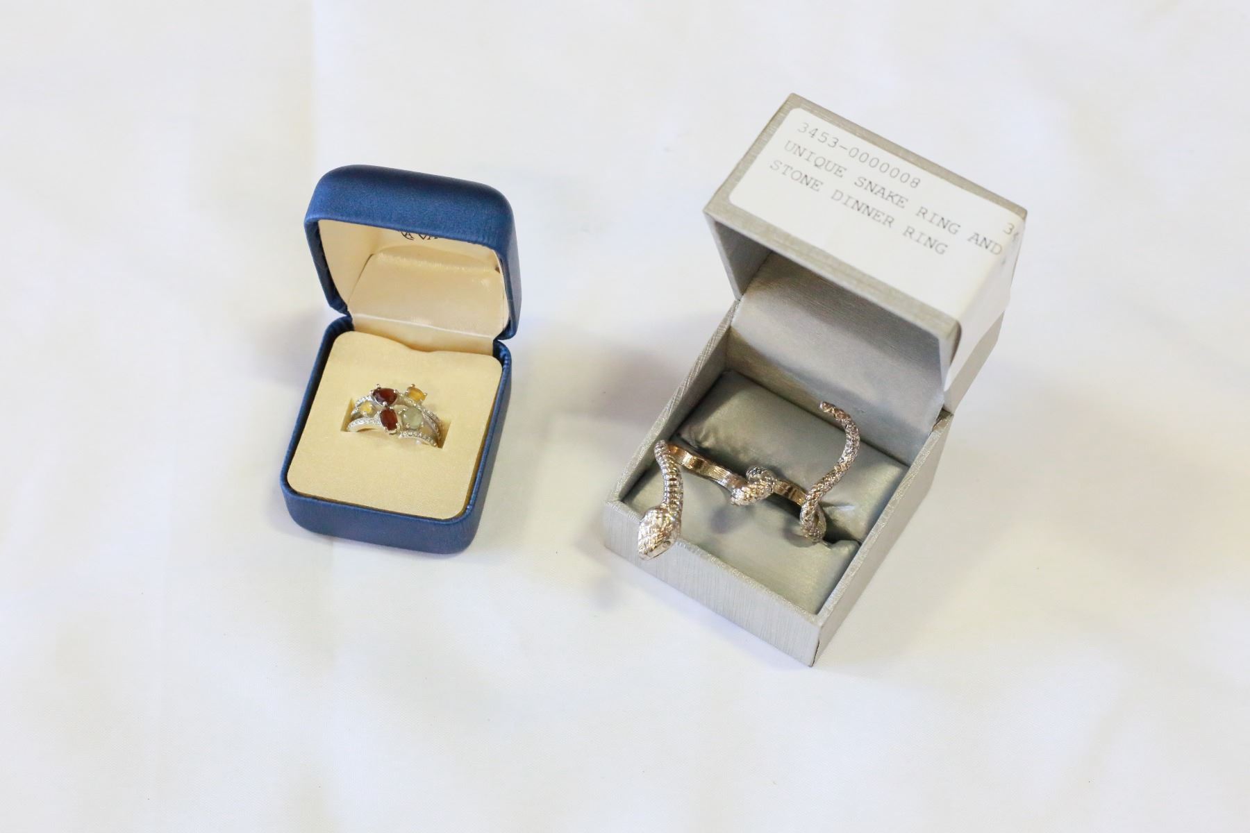 UNIQUE SNAKE RING AND MULTI STONE DINNER RING
