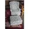 UPOLSTERED WINGBACK CHAIR AND OTTOMAN
