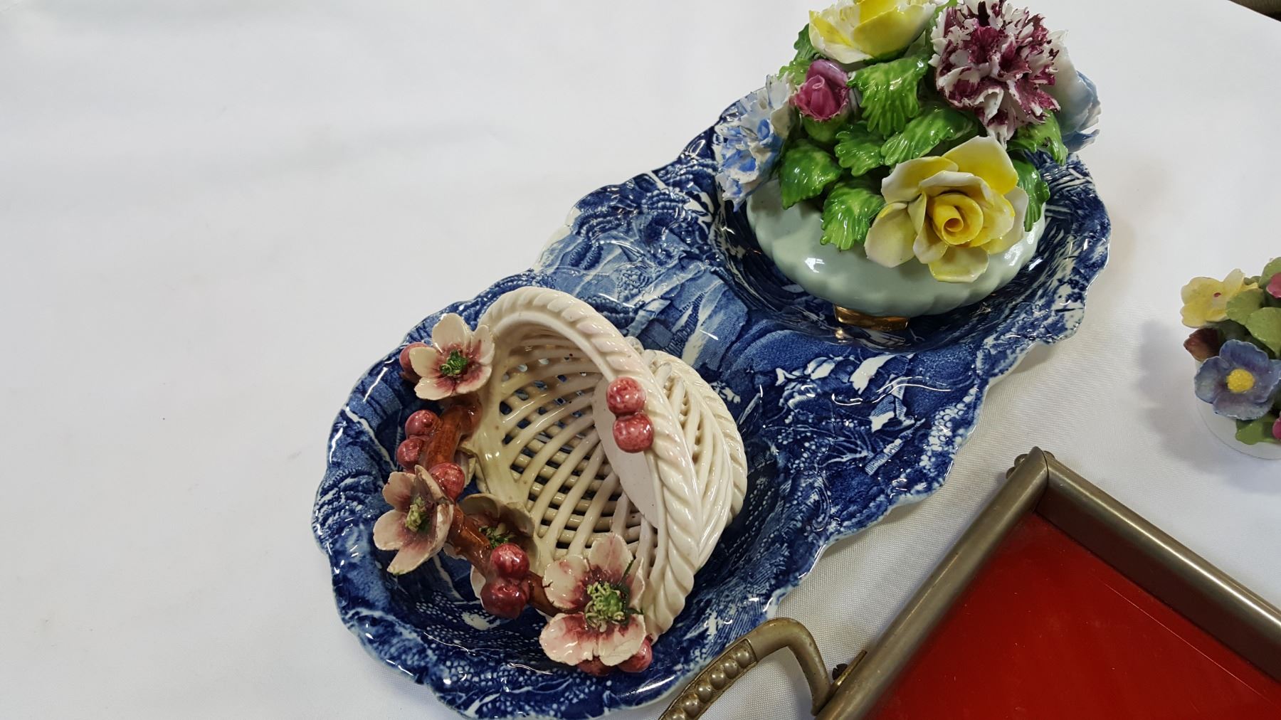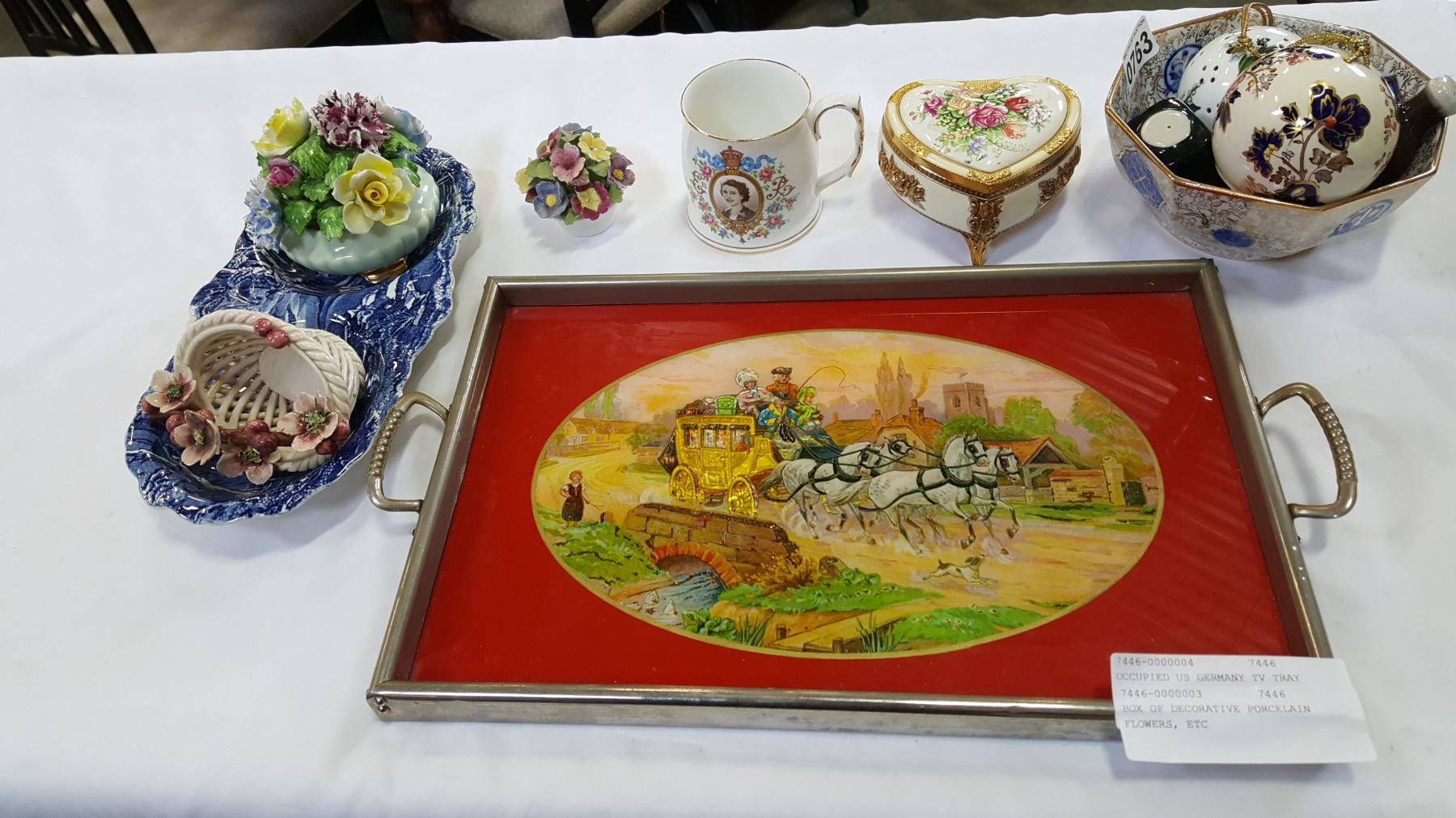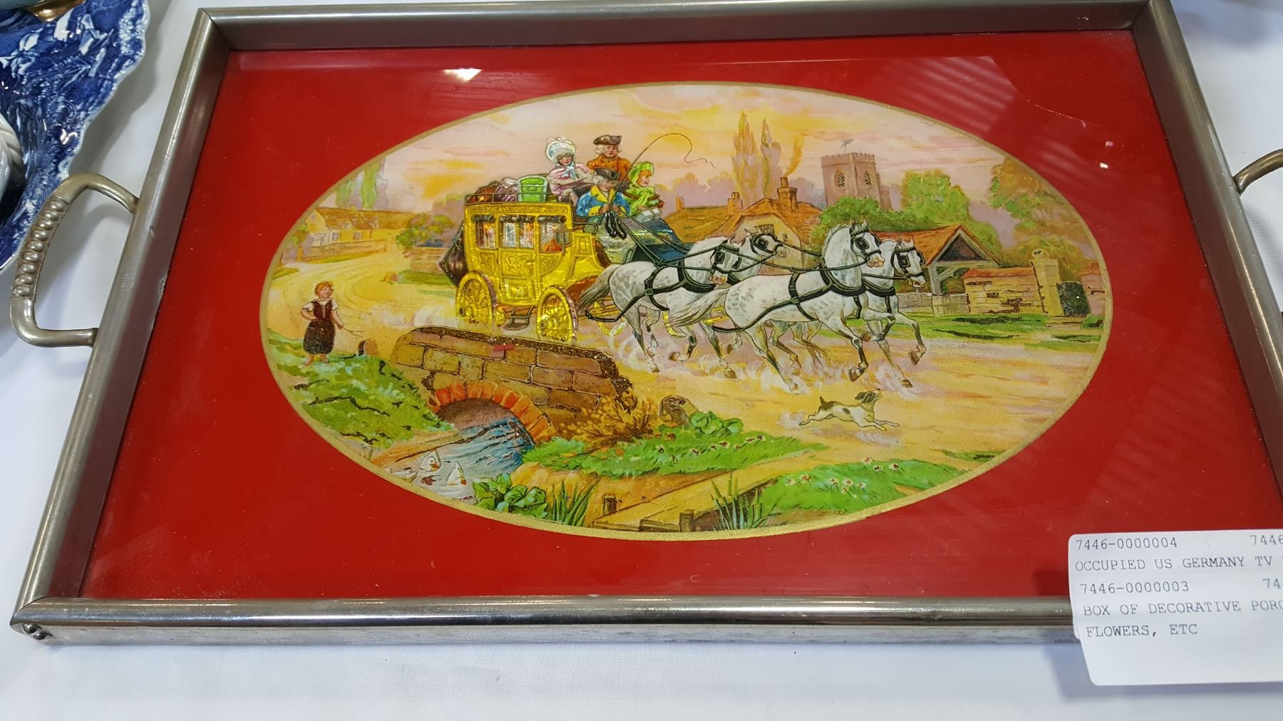 US OCCUPIED GERMANY TV TRAY, DECORATIVE PORCELAIN FLOWERS