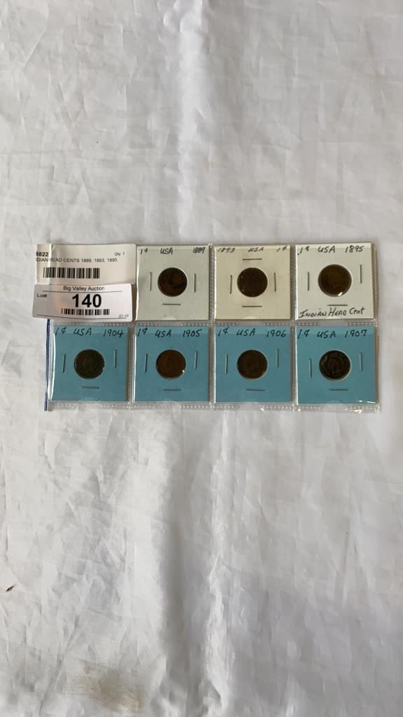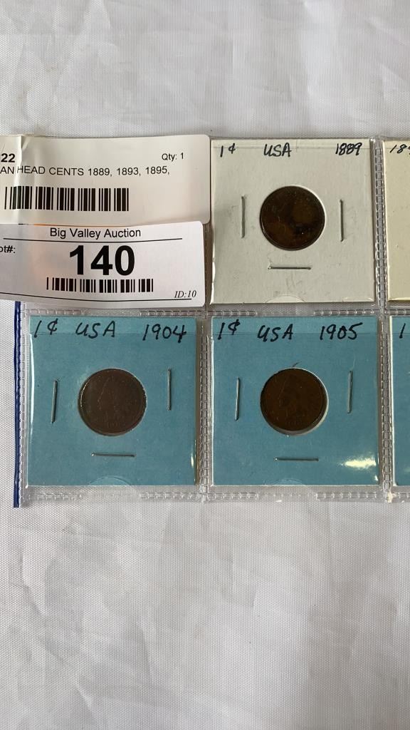 USA INDIAN HEAD CENTS 1889, 1893, 1895, 1904, 1905, 1906, 1907