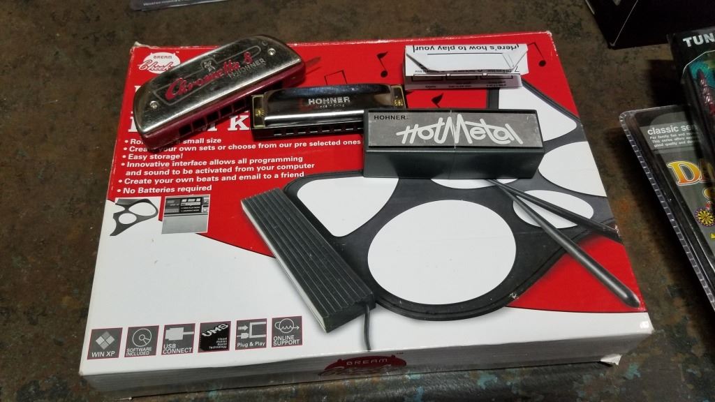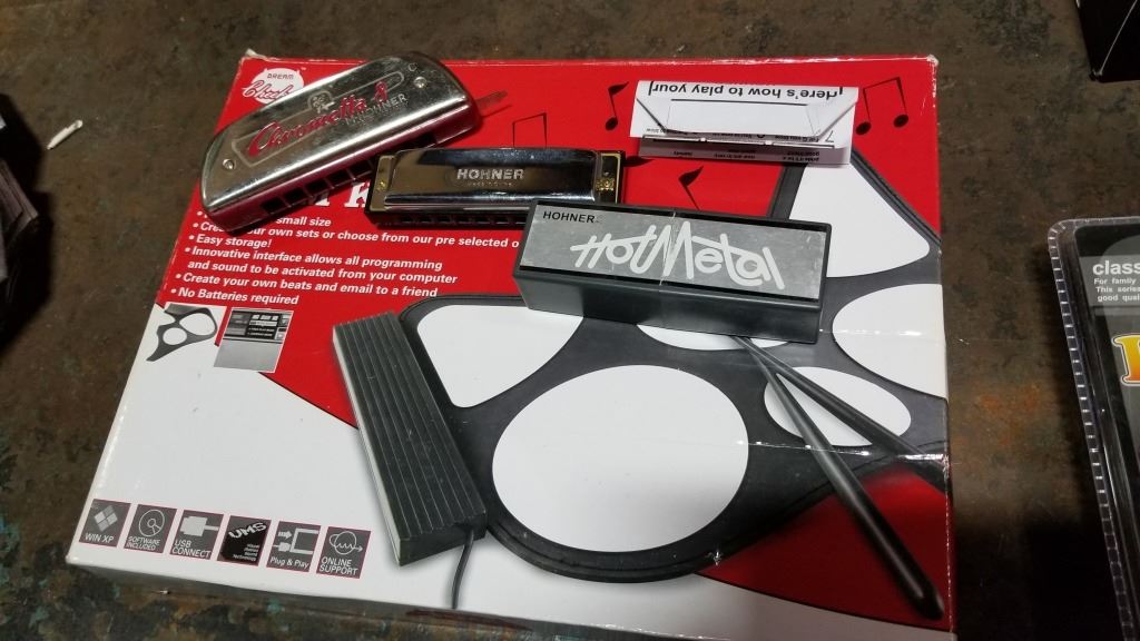 USB ROLL UP DRUMSET AND 2 HOHNER HARMONICAS HOT METAL AND CHROMETTA 8