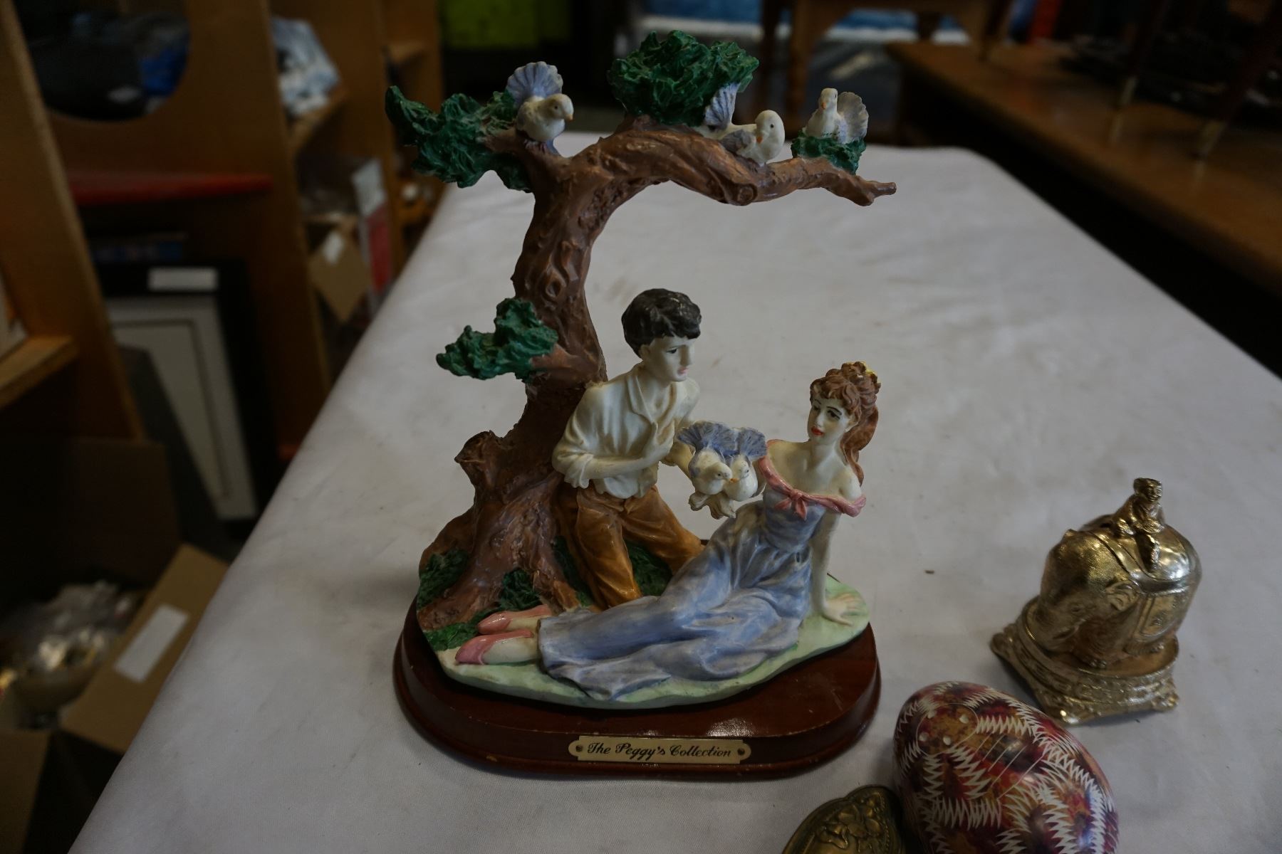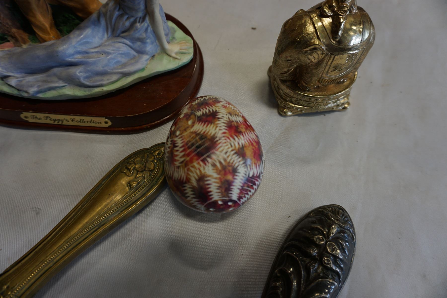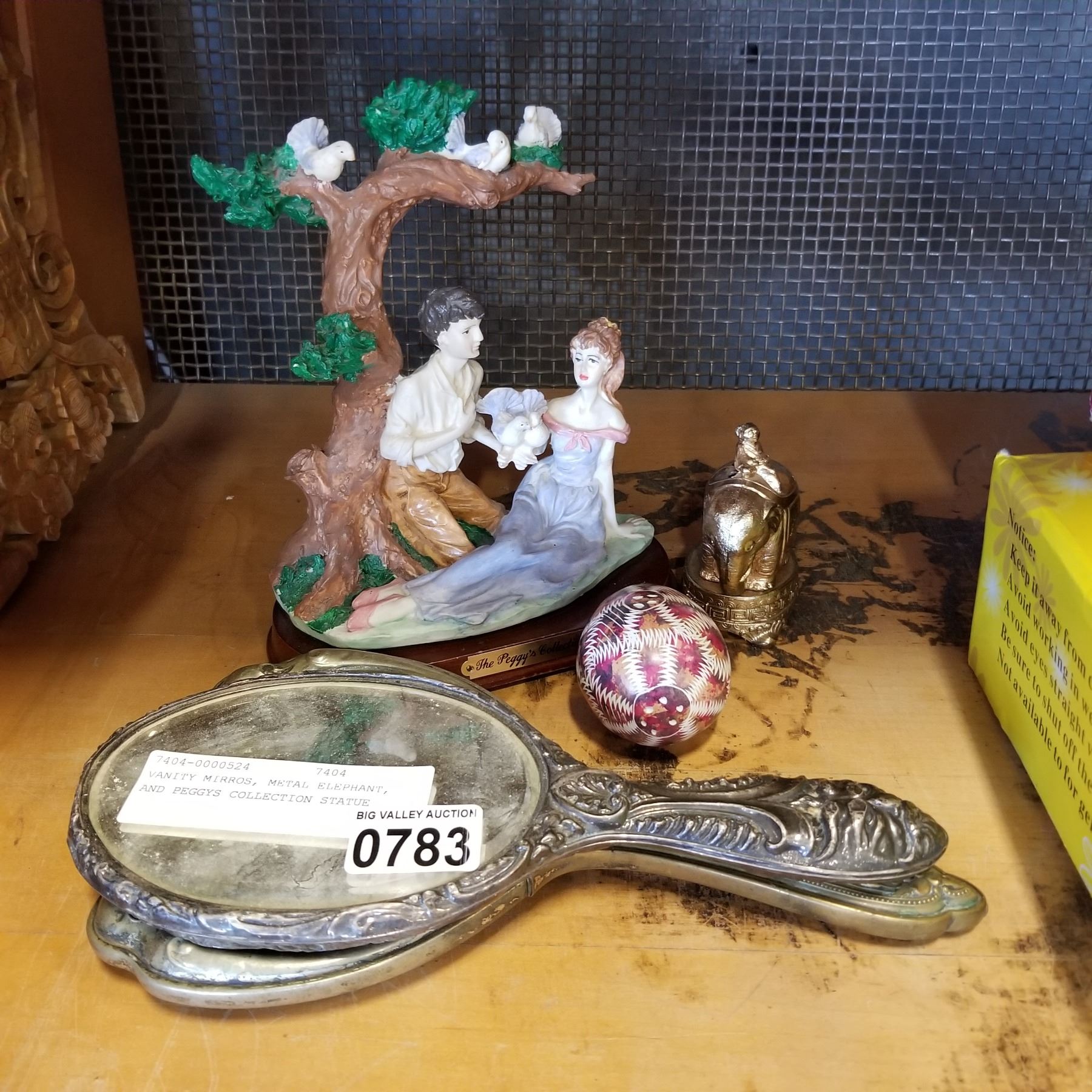 VANITY MIRROS, METAL ELEPHANT, AND PEGGYS COLLECTION STATUE