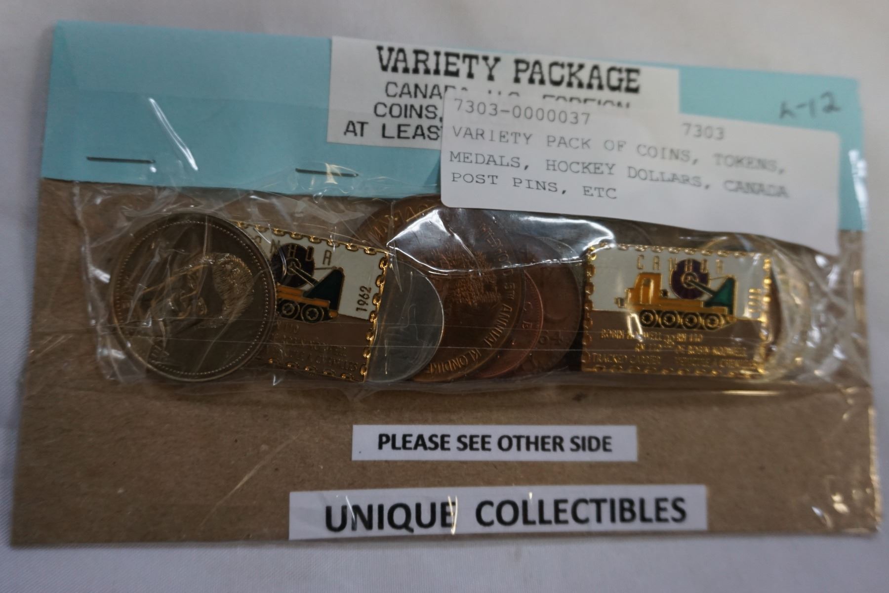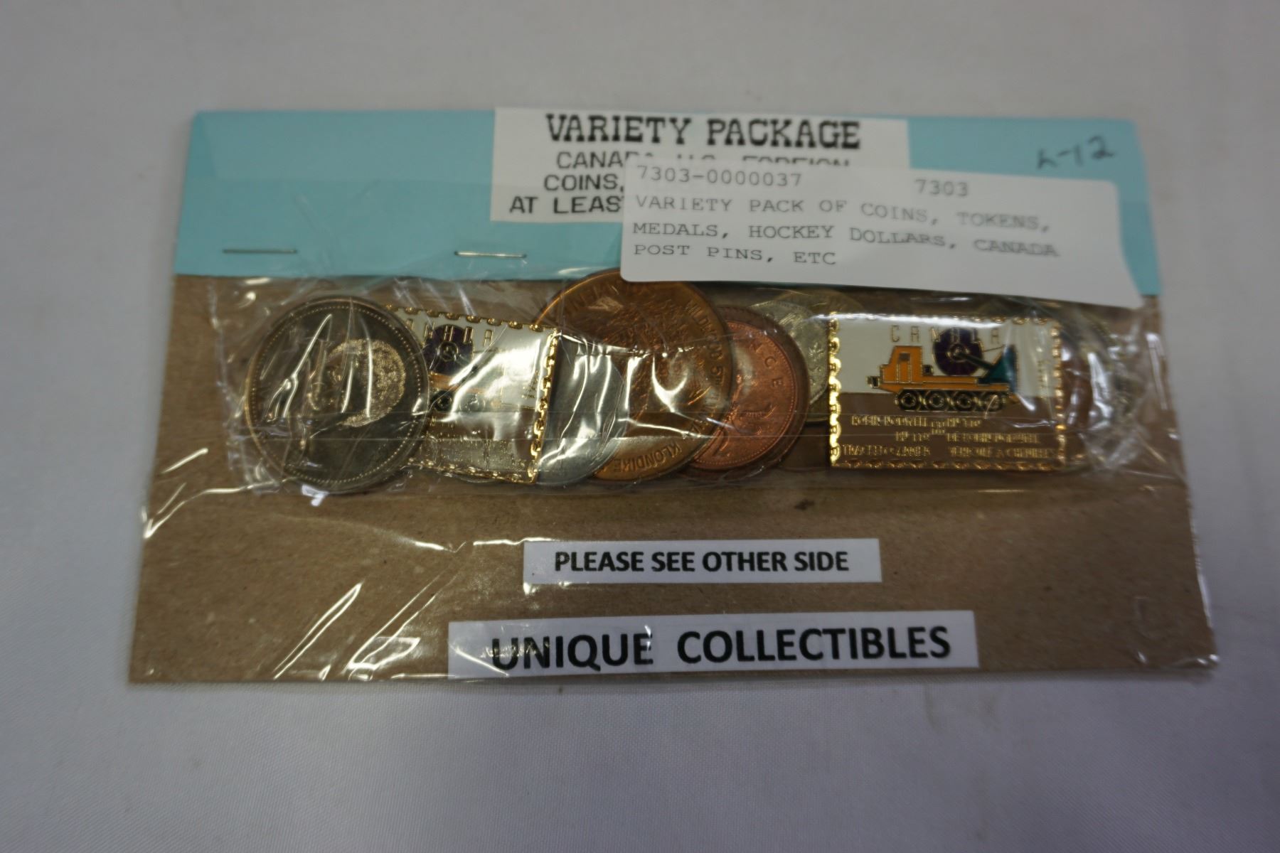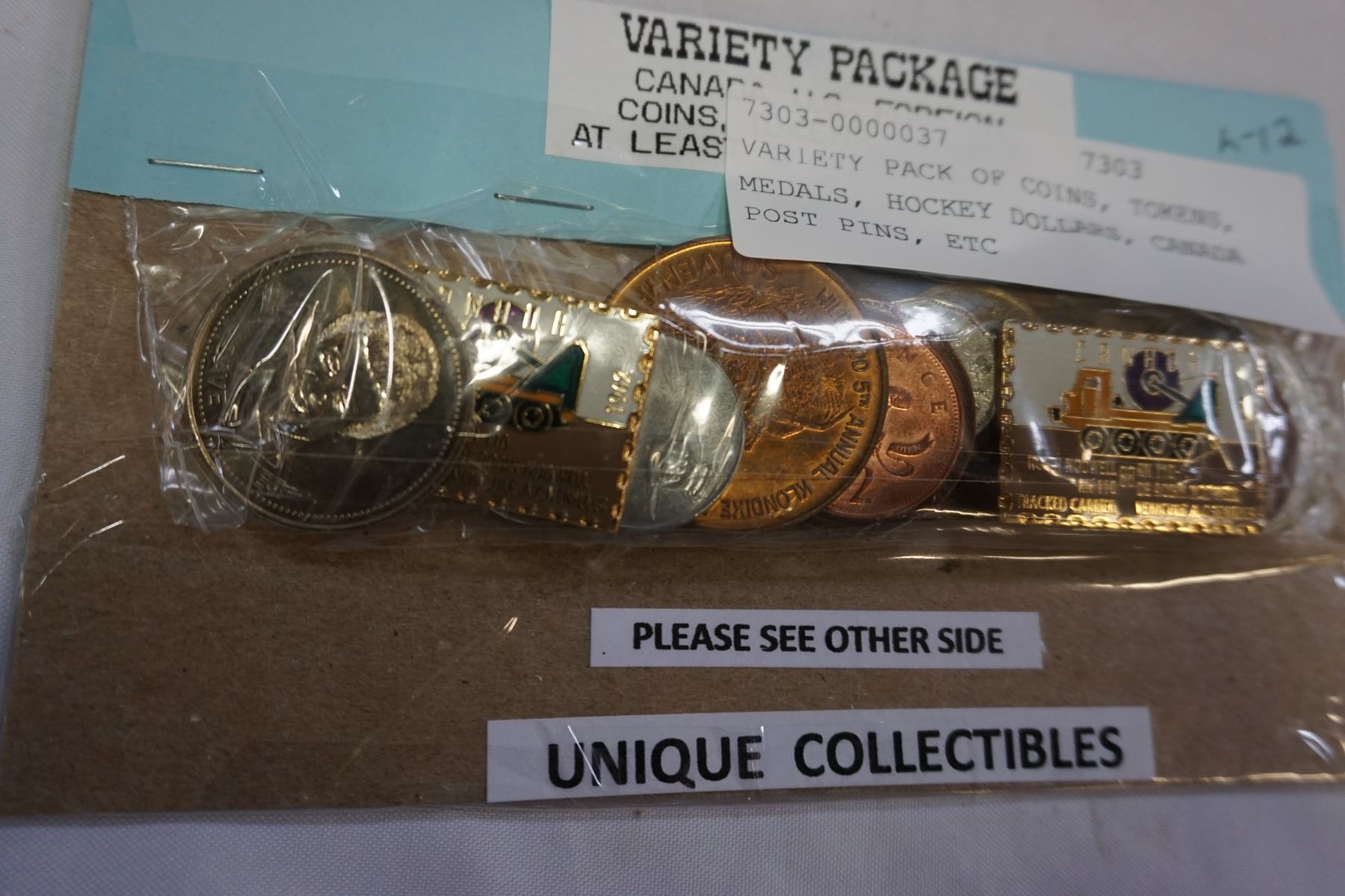 VARIETY PACK OF COINS, TOKENS, MEDALS, HOCKEY DOLLARS, CANADA POST PINS, ETC