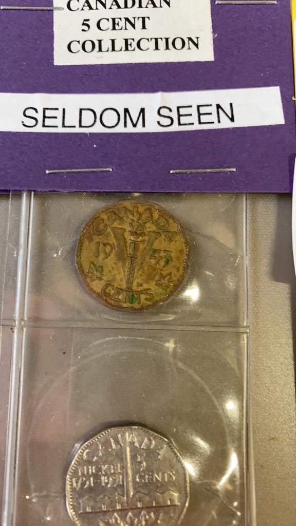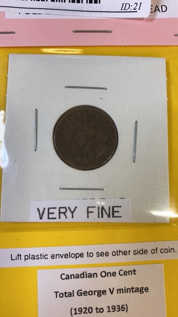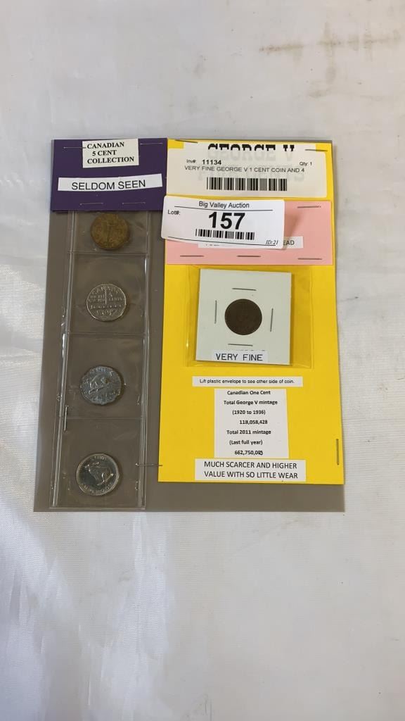 VERY FINE GEORGE V 1 CENT COIN AND 4 SELDOM SEEN 5 CENT COIN