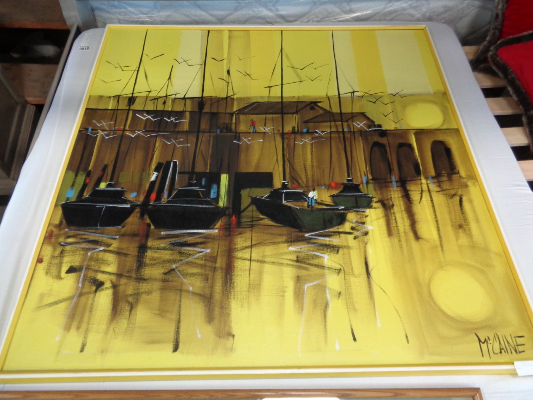 VERY LARGE YELLOW PAINTING ON CANVAS BY ROBERT MCCAINE OF CALIFORNIA