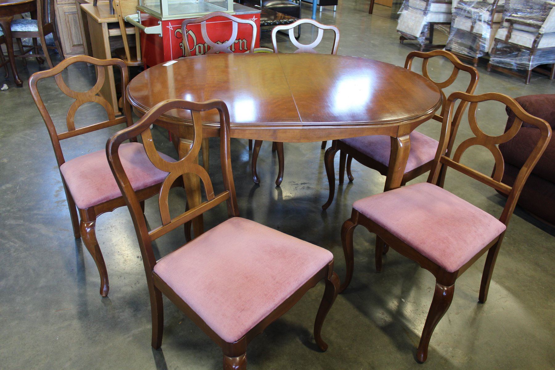 VERY NICE FRUITWOOD TABLE AND 6 CHAIRS BY GIBBARD