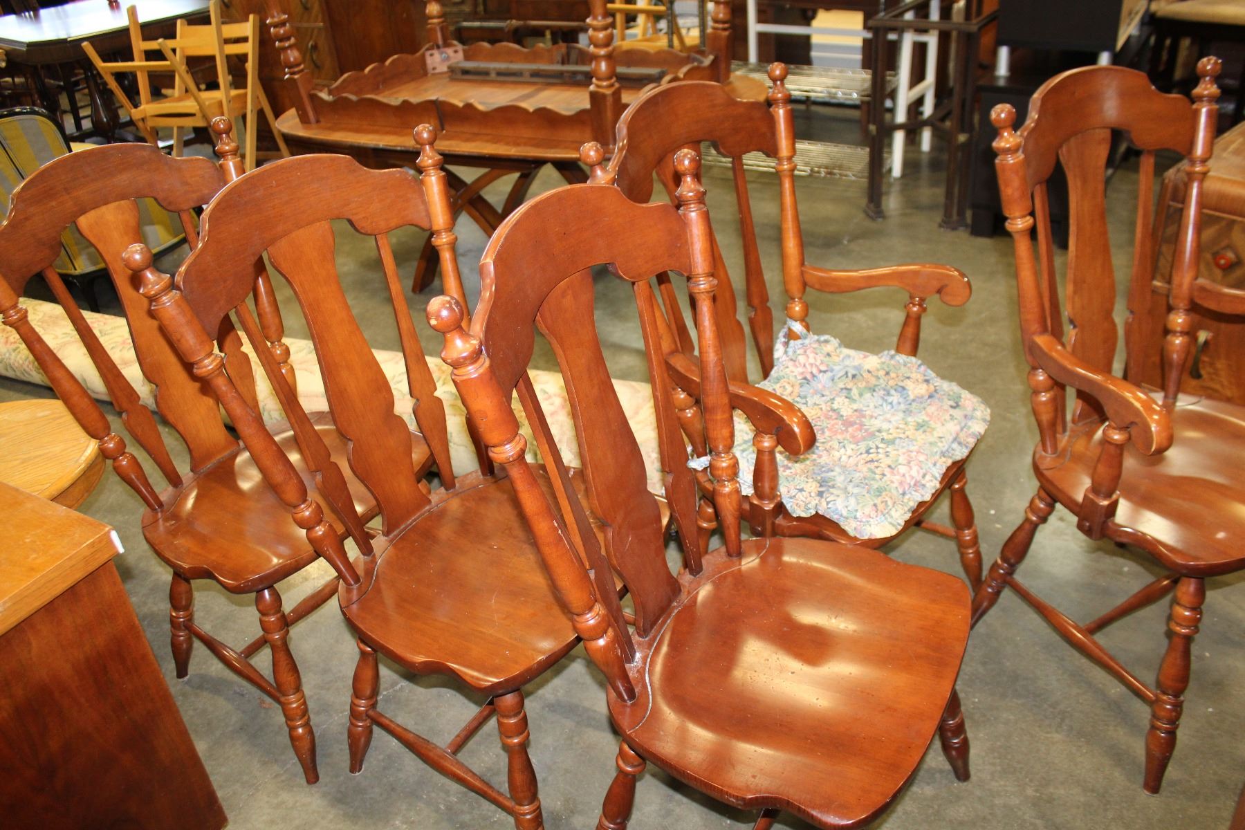 VILAS MAPLE DINING TABLE WITH 2 LEAFS AND FIVE CHAIRS