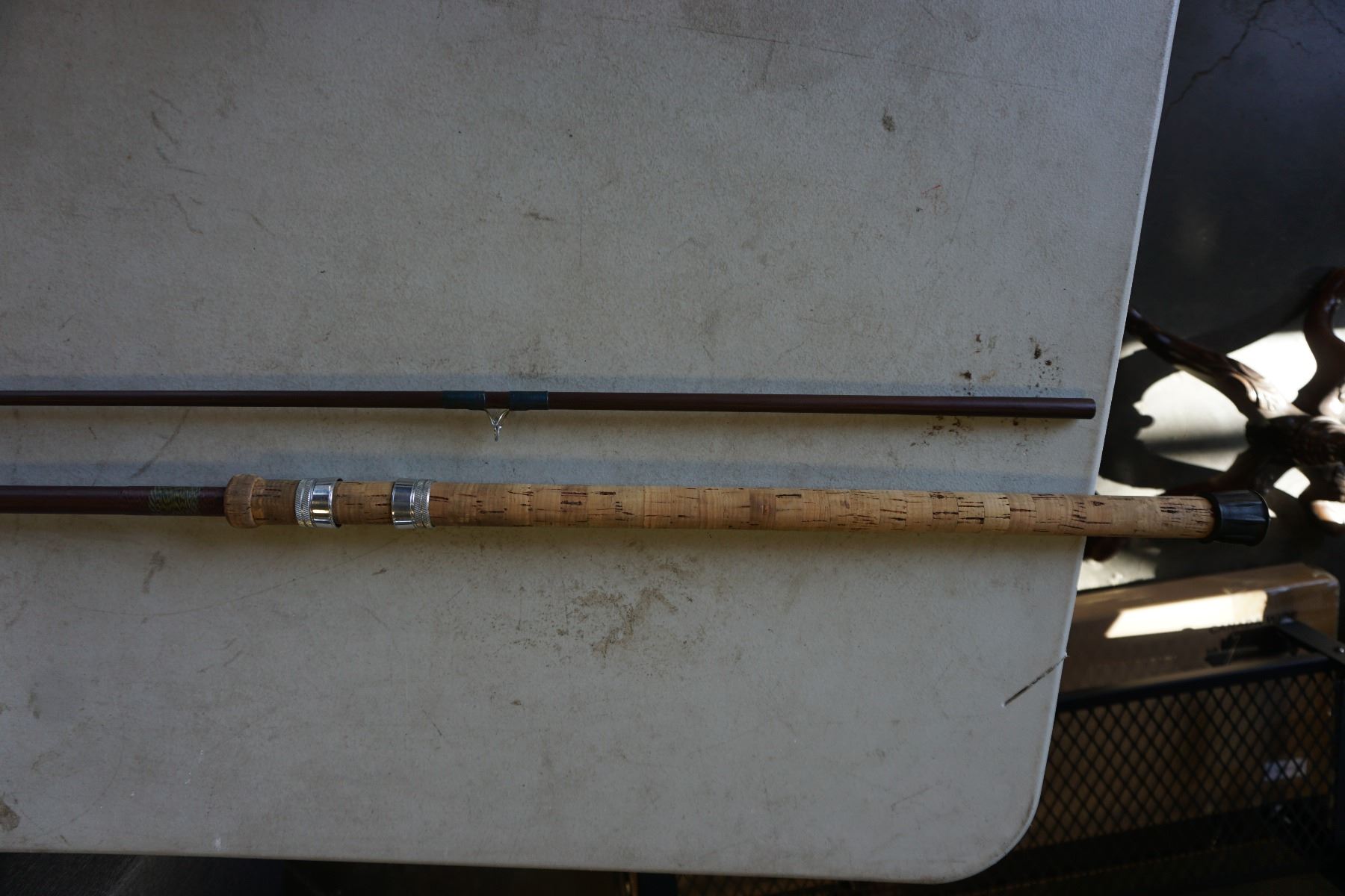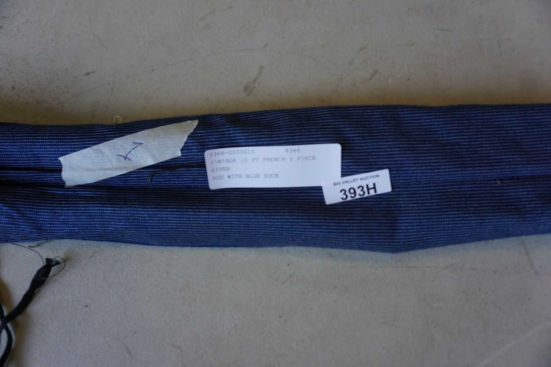 VINTAGE 10 FT FRENCH 2 PIECE RIVER ROD WITH BLUE SOCK