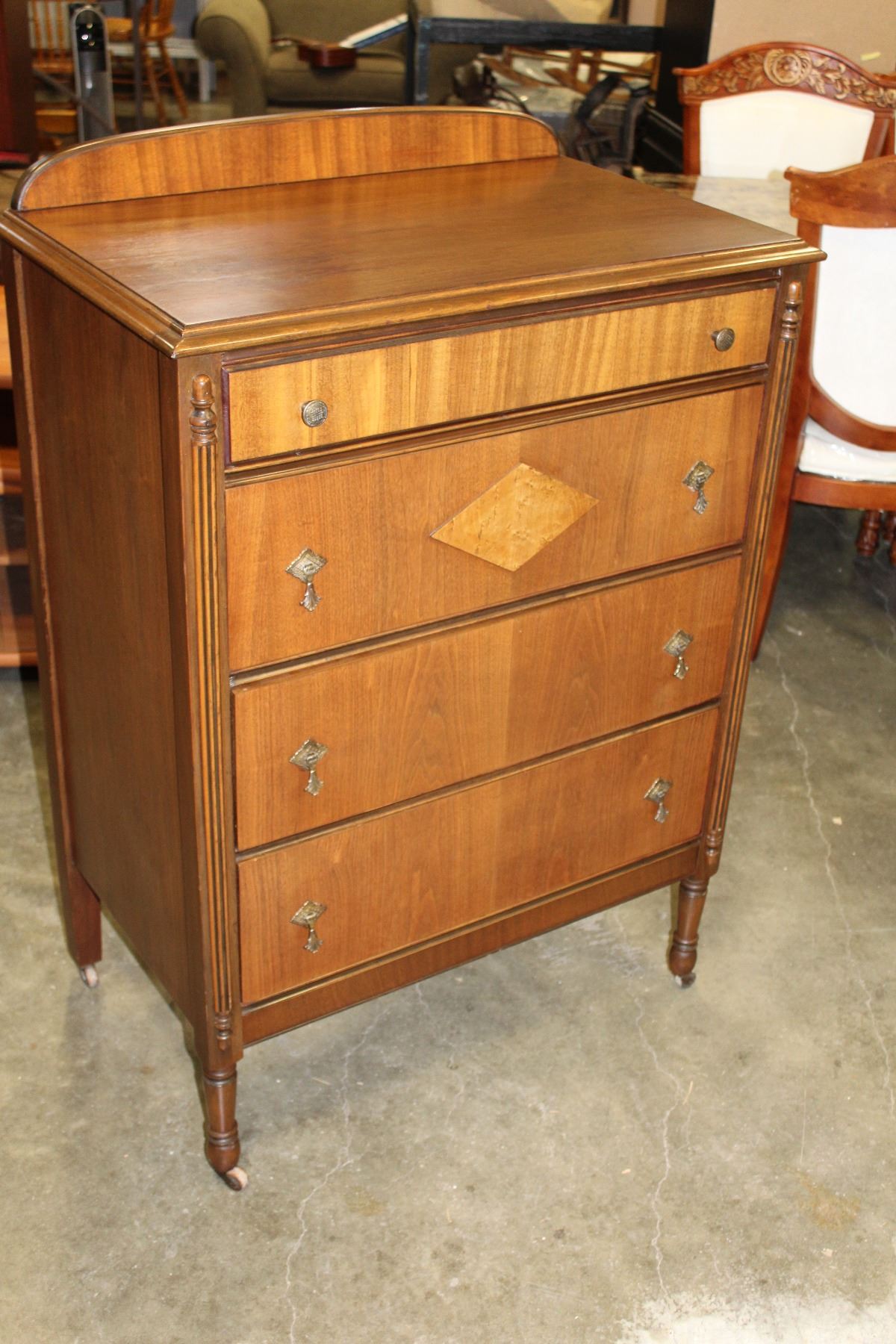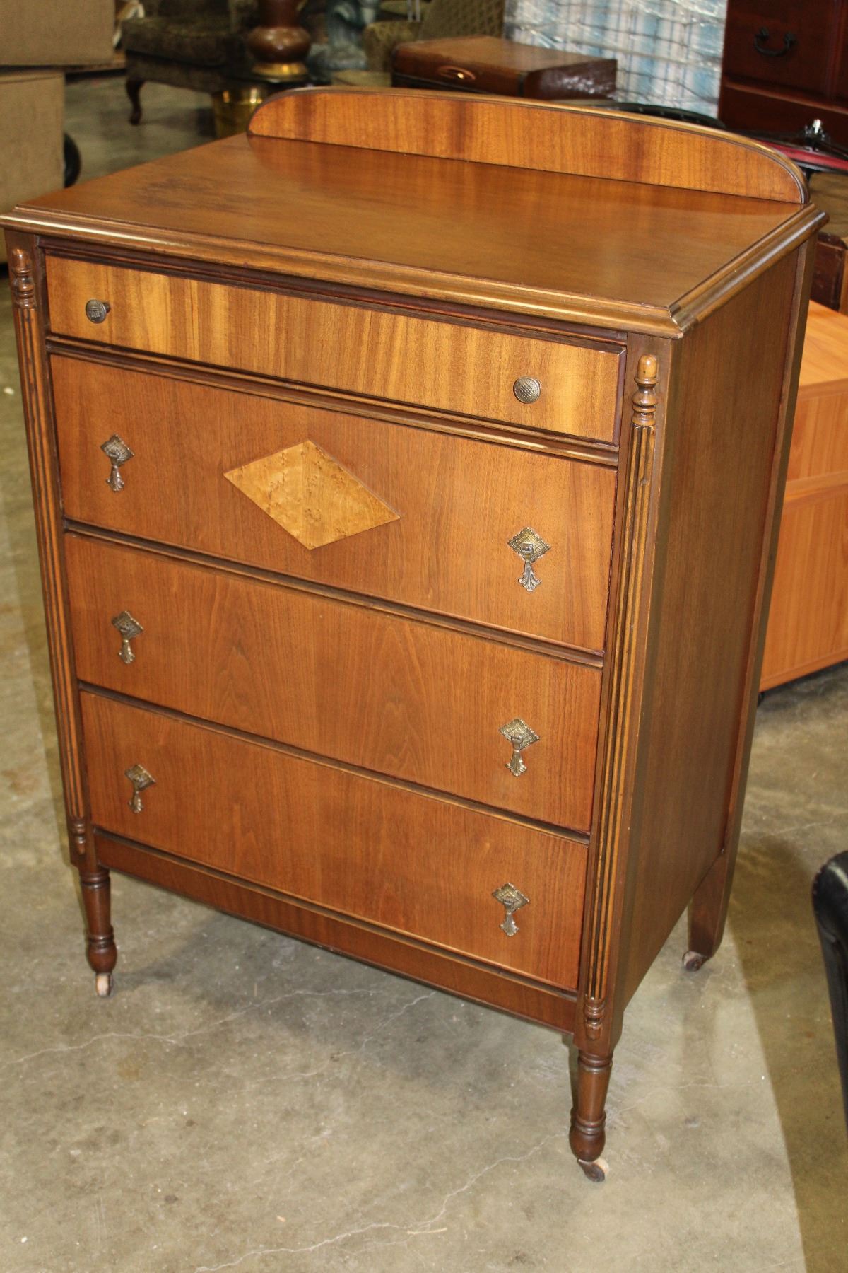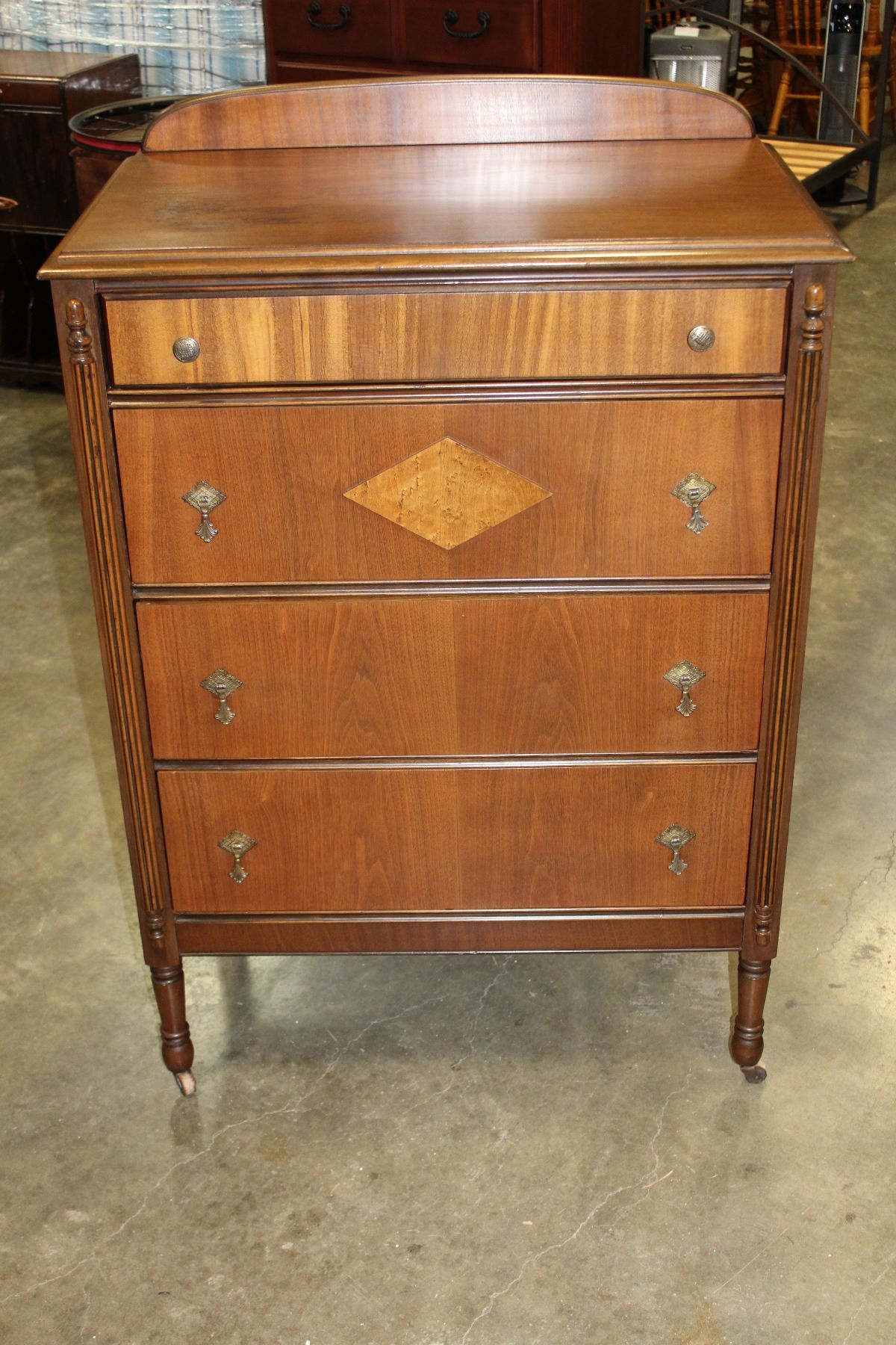 VINTAGE 4 DRAWER WALNUT HIGHBOY DRESSER