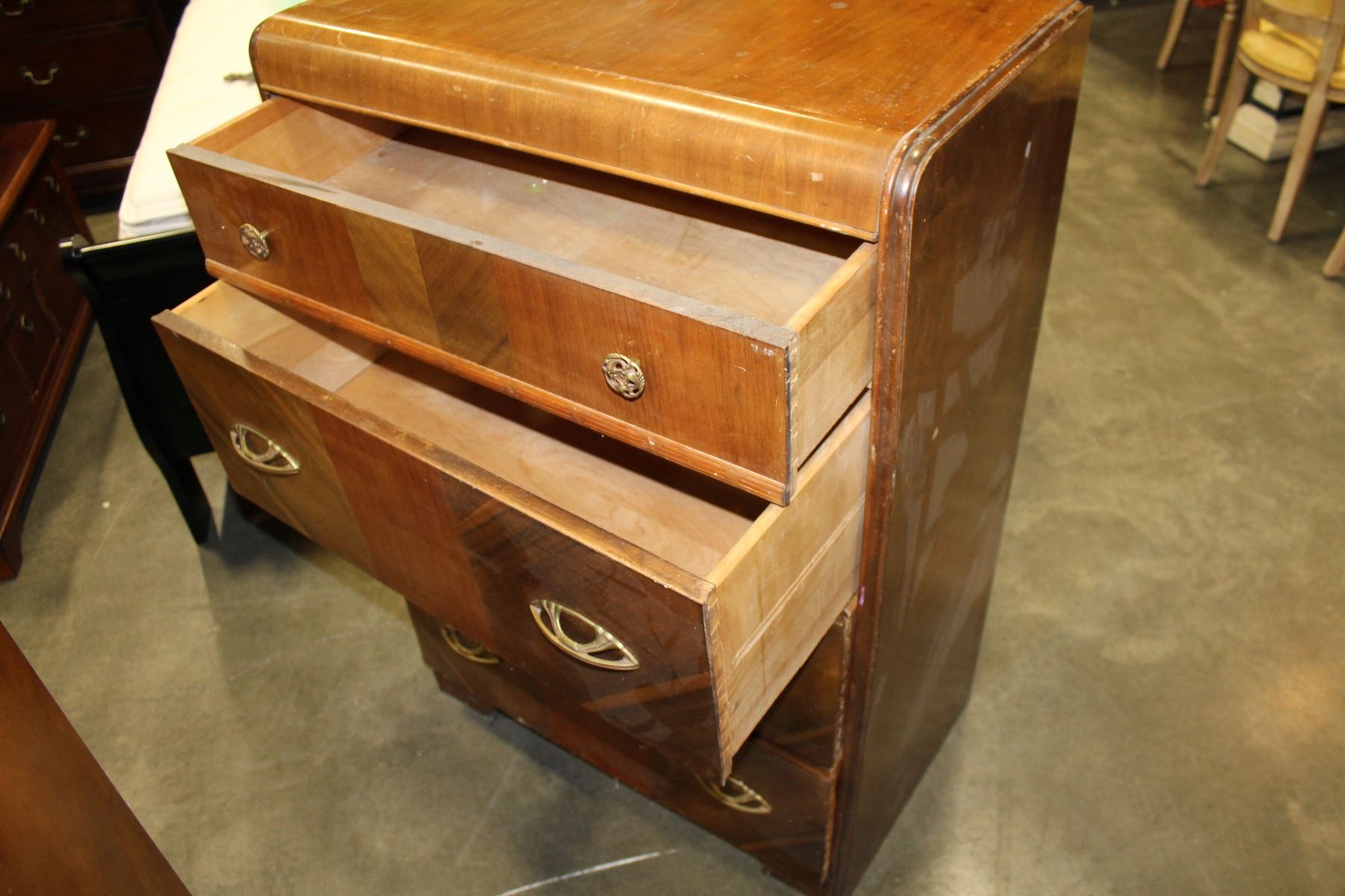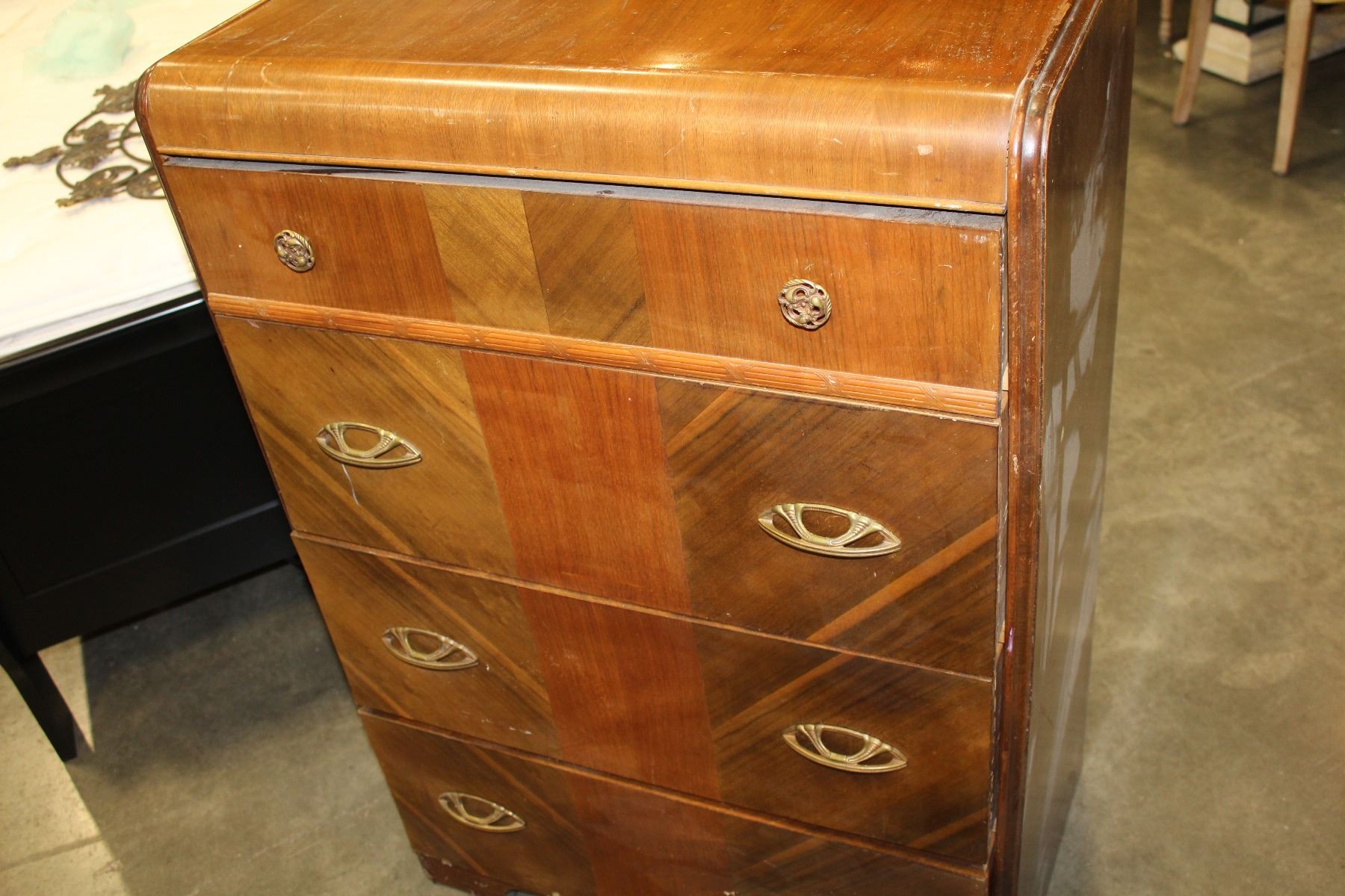 VINTAGE 4 DRAWER WATERFALL HIGHBOY DRESSER