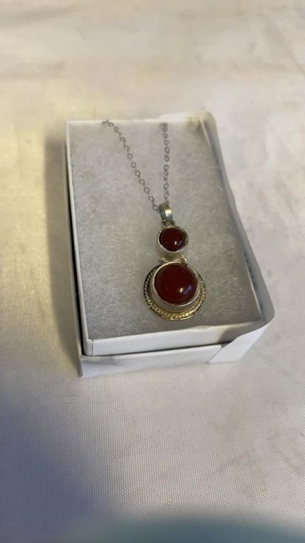 VINTAGE 925 ITALIAN STERLING SILVER PENDANT NECKLACE WITH RED STONES