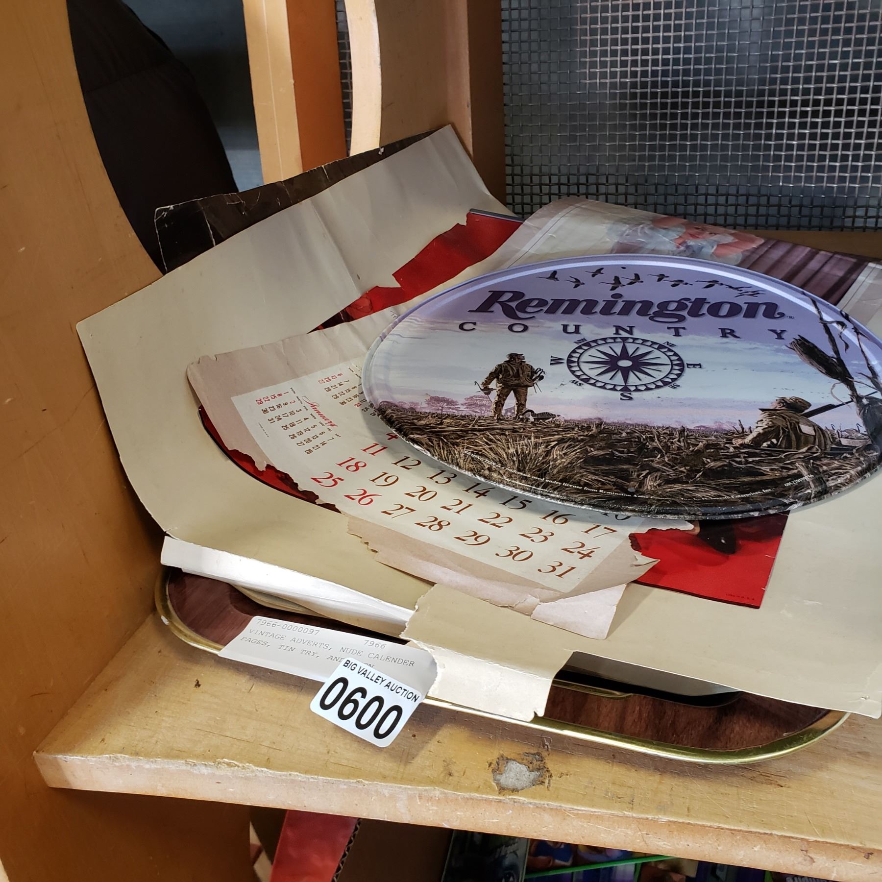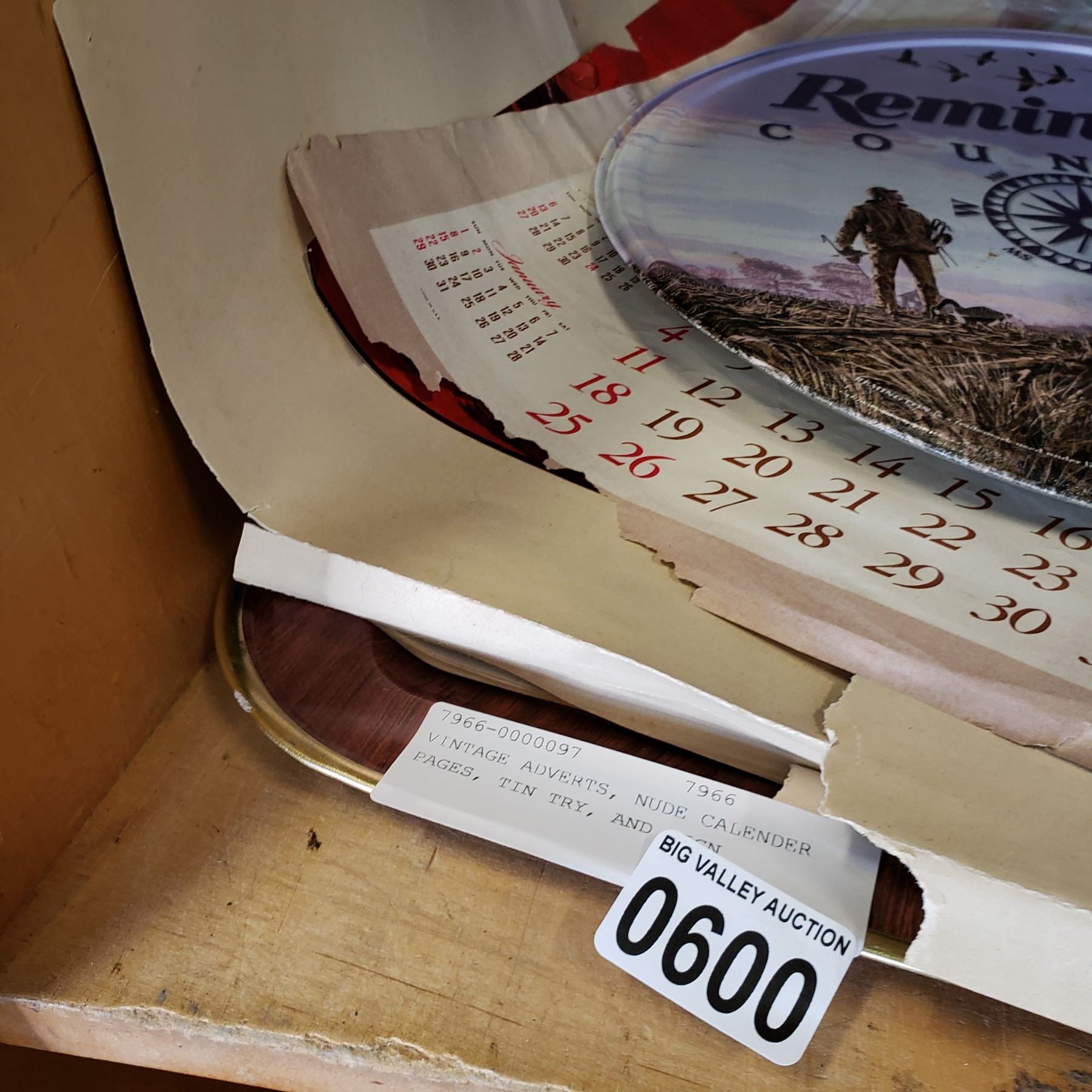VINTAGE ADVERTS, NUDE CALENDER PAGES, TIN TRY, AND SIGN