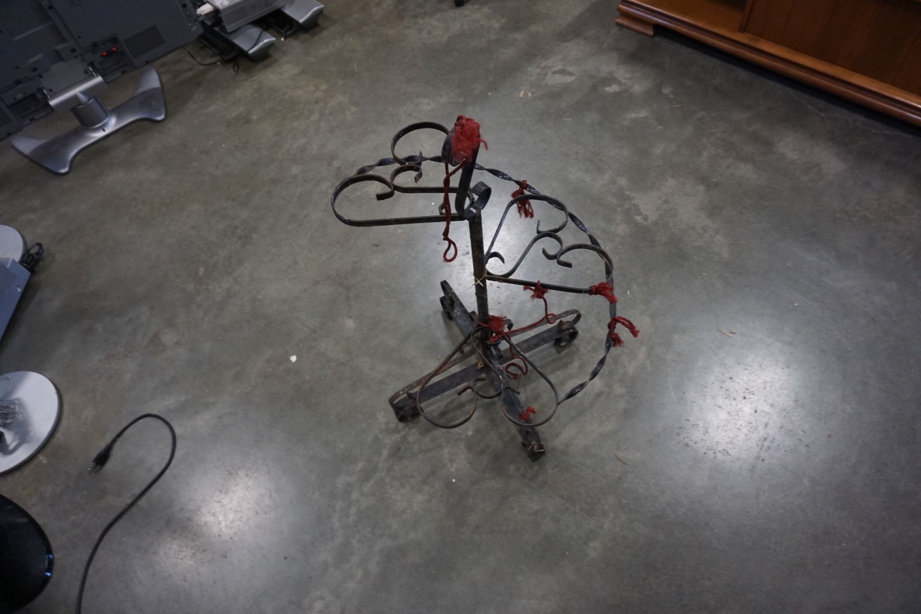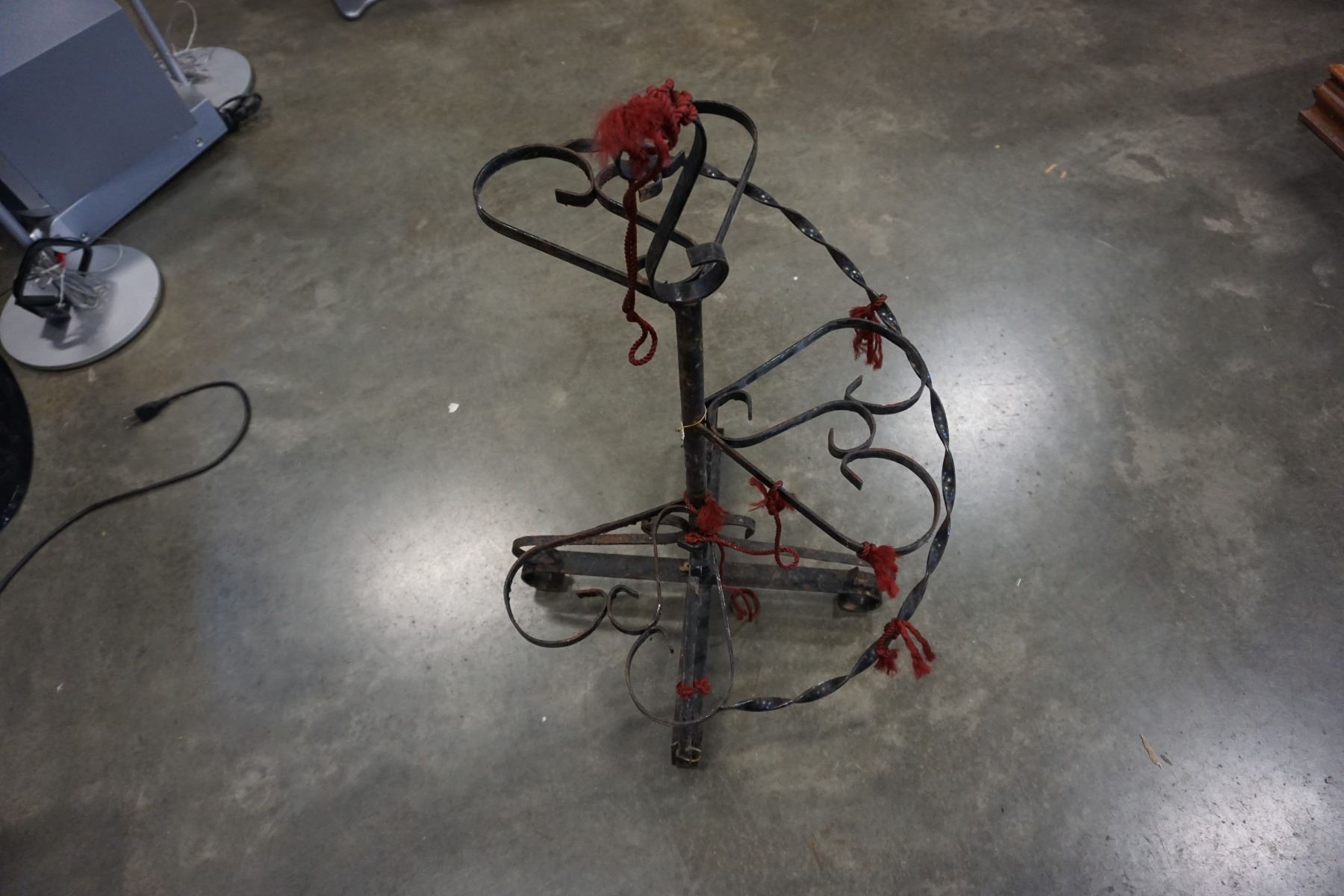 VINTAGE ALUMINUM 3 TIRE BENT IRON PLANTER STAND