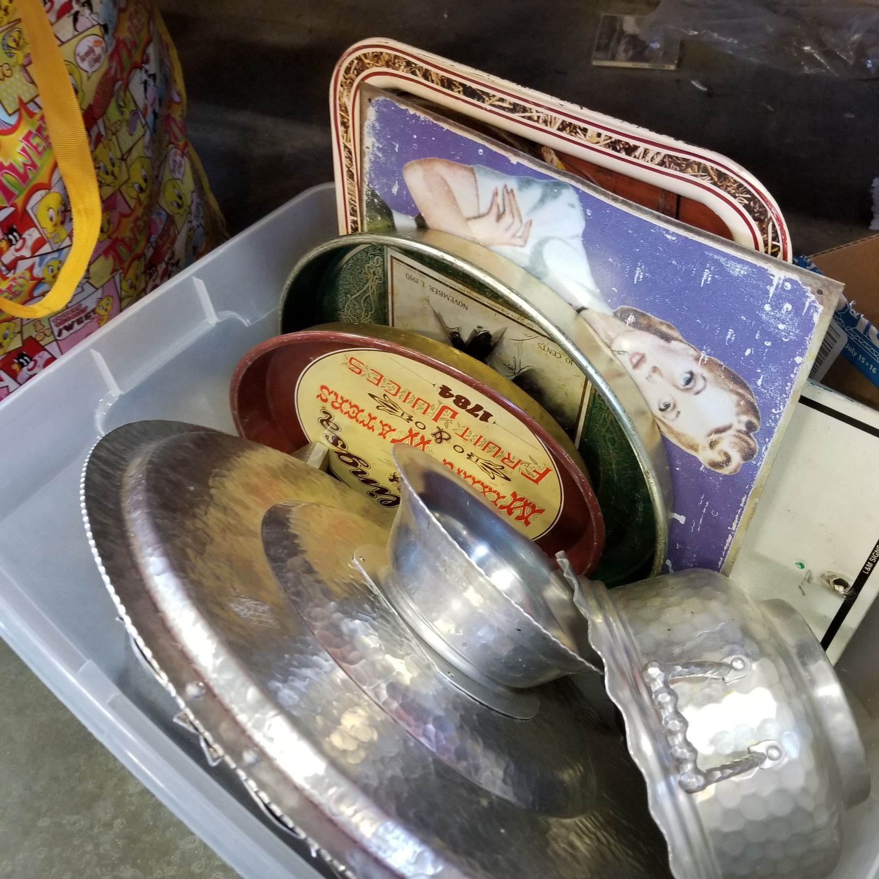 VINTAGE ALUMINUM PLATTERS, AND COLLECTOR TRAYS
